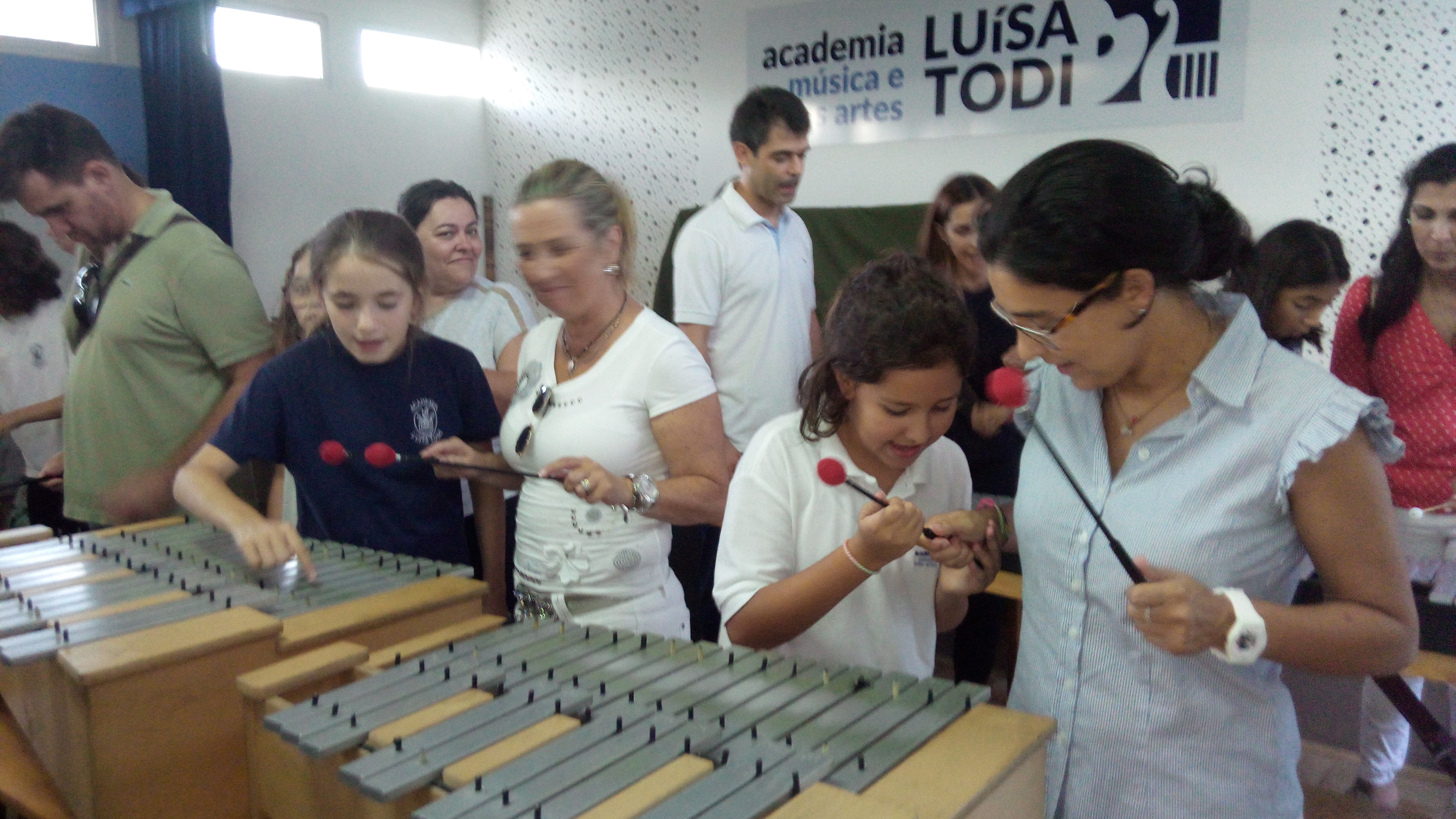 Foi no ginásio da Academia que tudo aconteceu pelas 18.30H. Os nossos pequenos professores tiveram a desafiante tarefa de pôr os próprios pais a tocar os instrumentos que habitualmente tocam na Classe de Conjunto. Depois de muitas explicações, demonstrações e alguns “desesperos” pelo meio, quase dando razão a Antoine de Saint-Exupéry quando afirmava “As pessoas crescidas têm sempre necessidade de explicações… Nunca compreendem nada sozinhas e é fatigante para as crianças estarem sempre a dar explicações”, os nossos pequenos professores provaram que o tamanho tem pouca importância e mostraram ser grandes mestres na arte de ensinar.