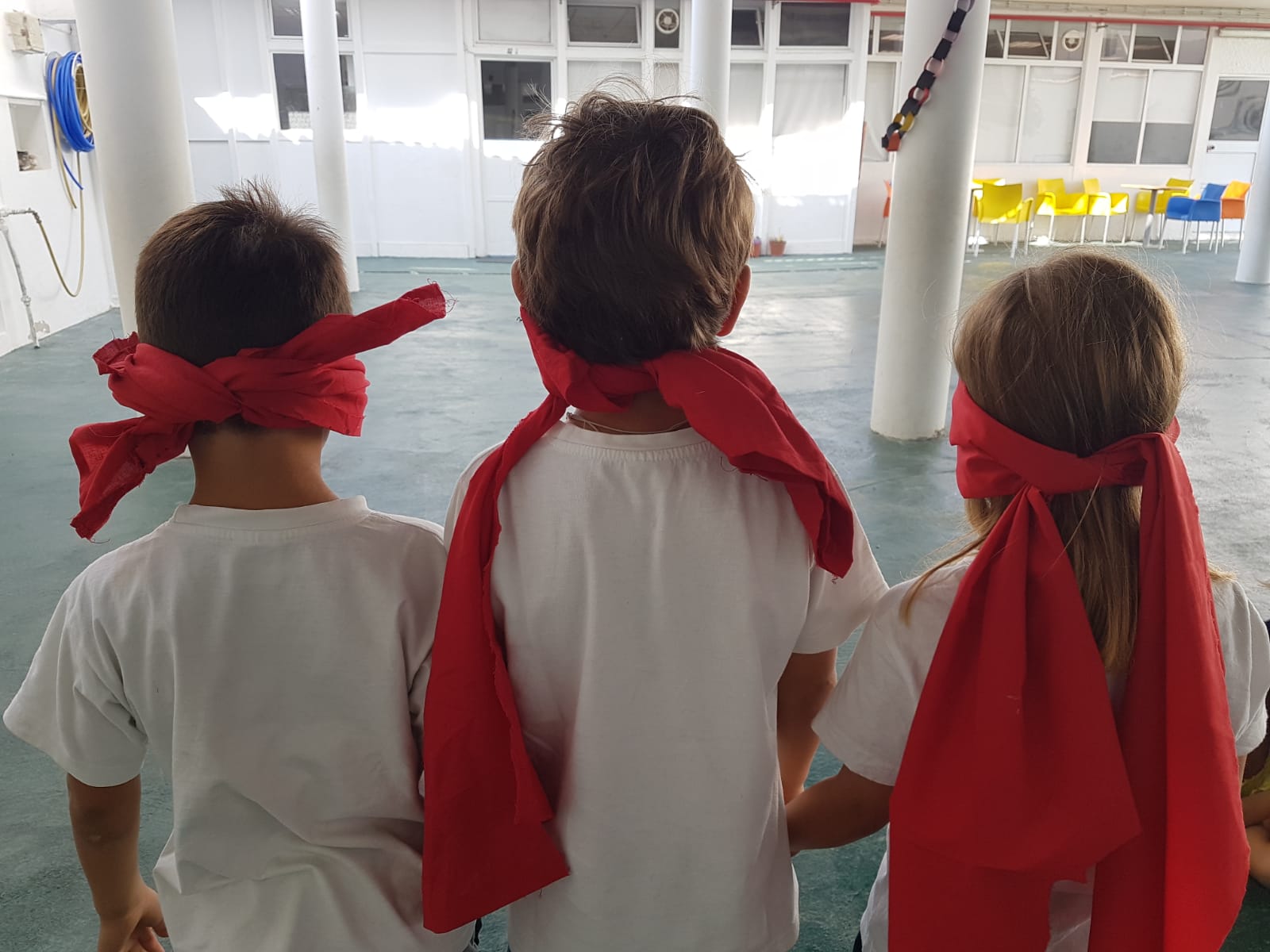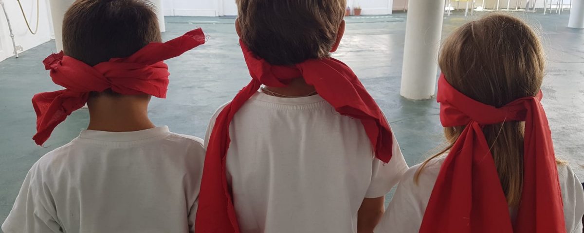 Matemática: Imaginaram qual o caminho percorrido pelo Ícaro no labirinto. Assim e de olhos vendados os alunos percorreram caminhos imaginários com base em orientações espaciais dadas pela professora. “Esquerda” / “Direita” / “Em Frente” / “Atrás” / “Entre”