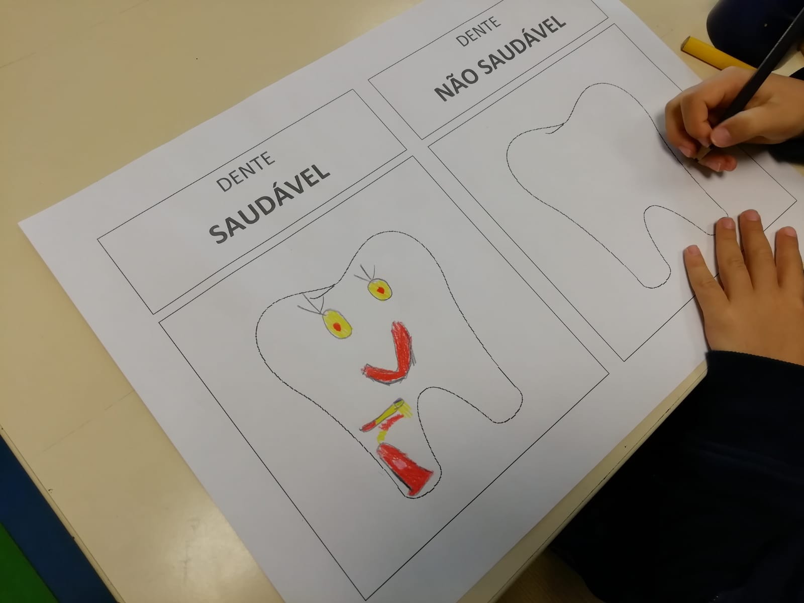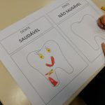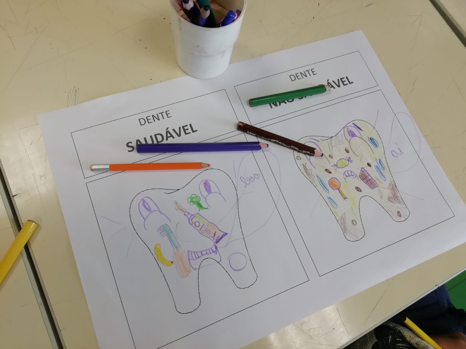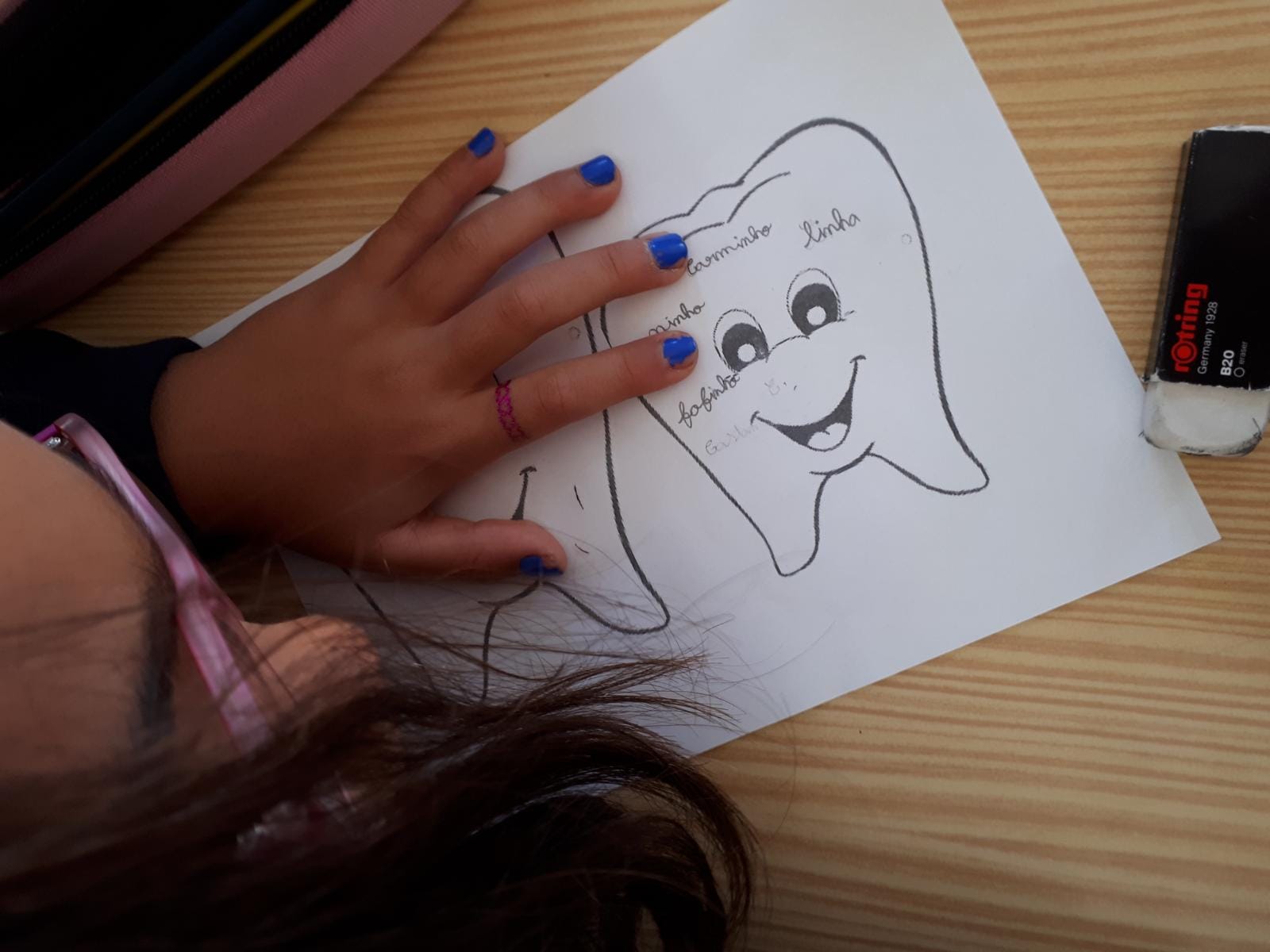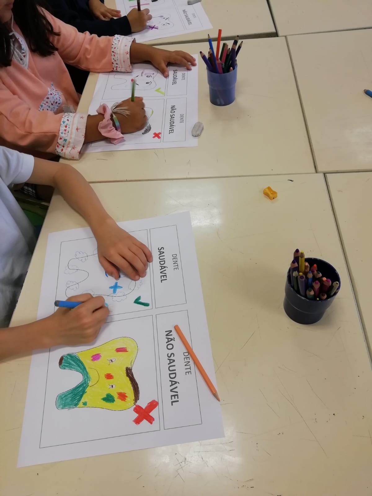 Educação Artística – Artes Visuais – Decoraram um dente saudável e um dente não saudável – com desenhos, recortes de alimentos de panfletos/revistas etc.