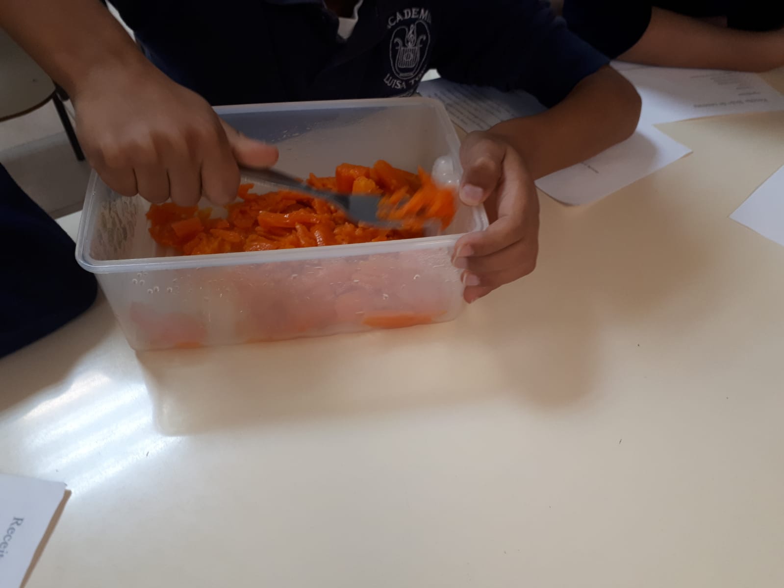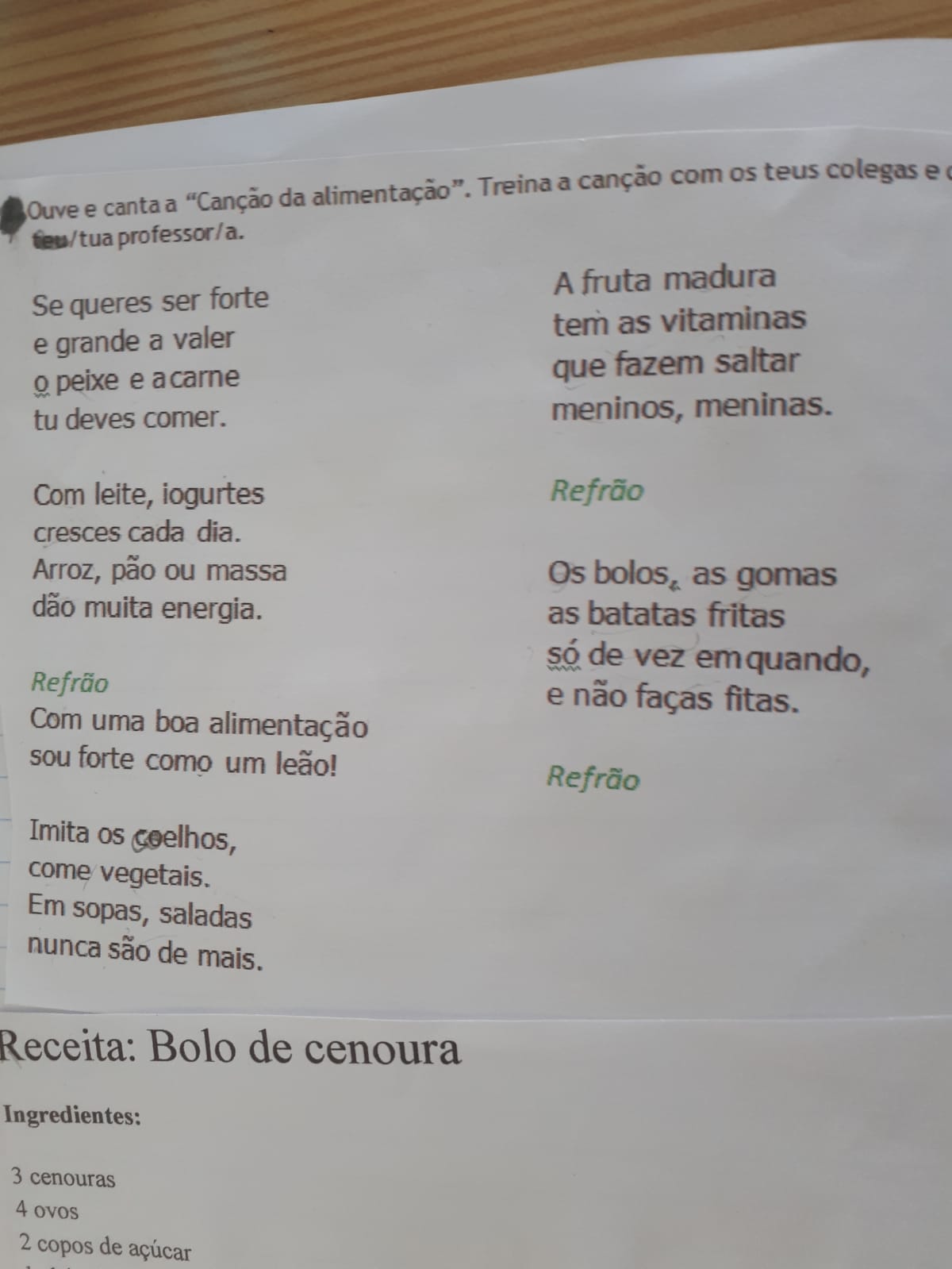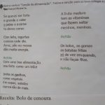 Introdução do texto instrucional – receita de um bolo de cenoura, para partilhar com os idosos do CAID – Centro de Apoio a Idosos Dependentes (depois da apresentação de duas músicas do dia da alimentação).