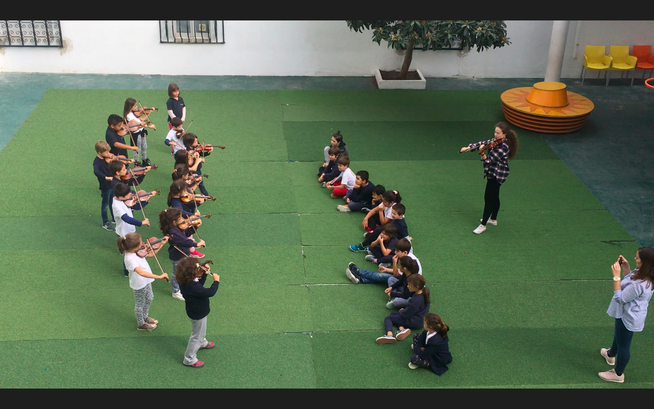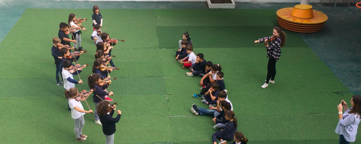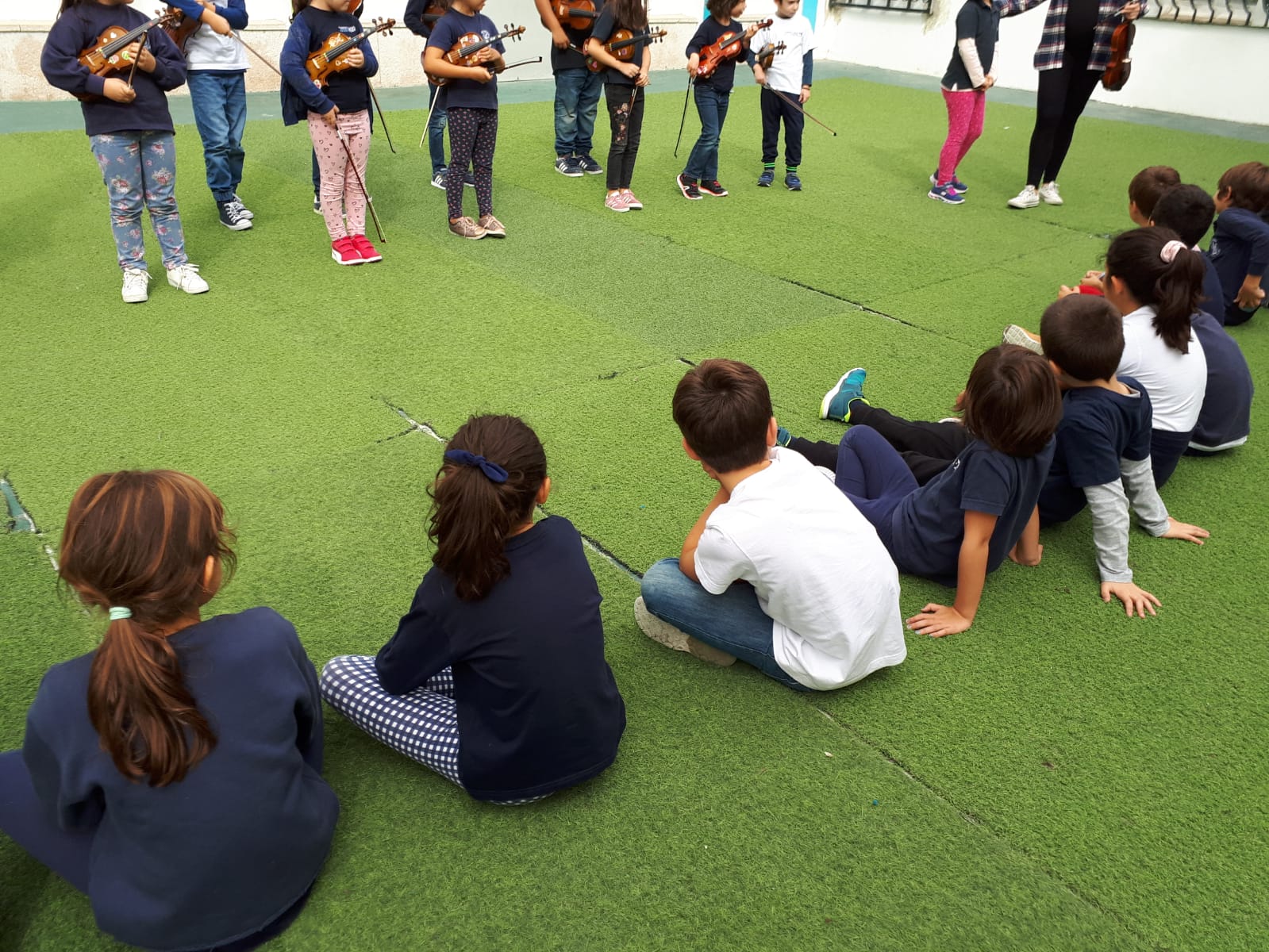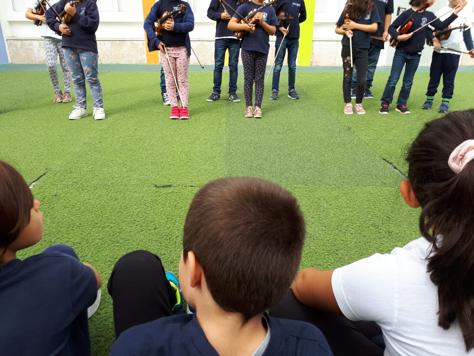Instrumento – Apresentação da música “Arroz com coco”, pelo Ensemble de cordas infantil e pela professora Joana Gomes.