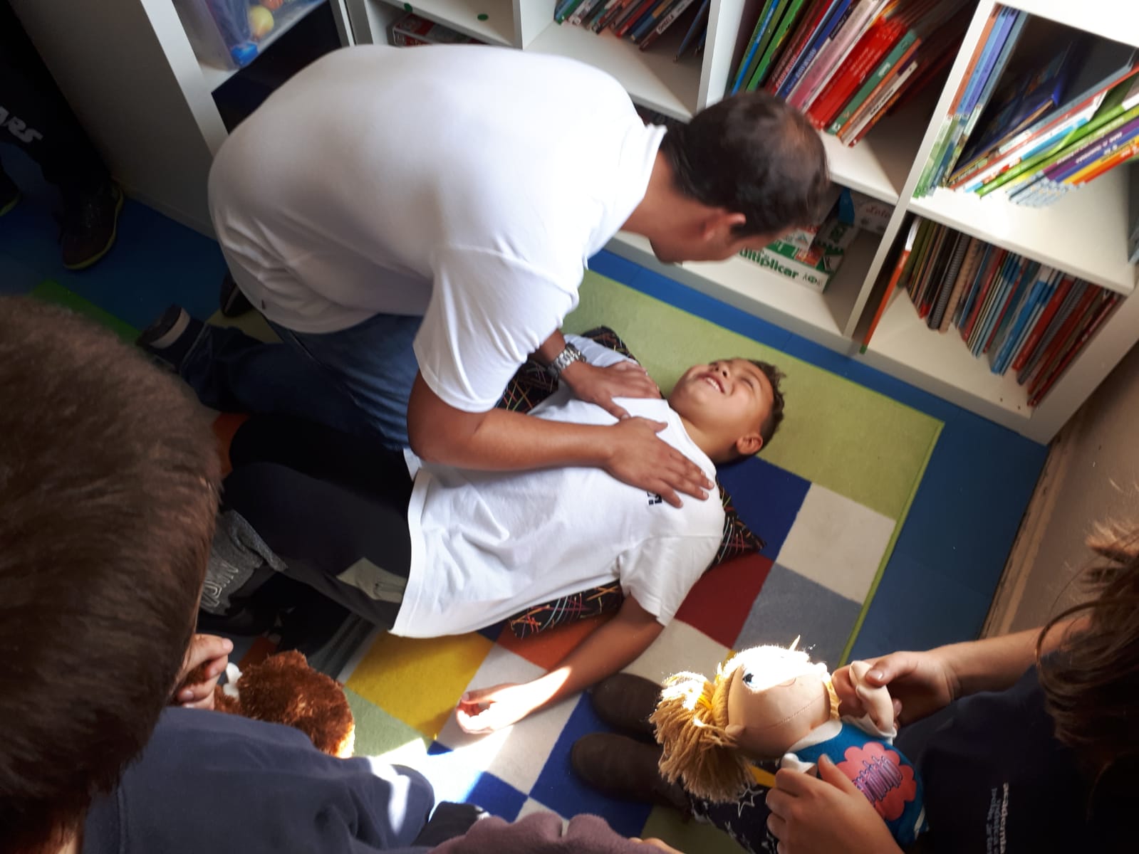 Sessão de esclarecimento sobre Suporte básico de Vida, dinamizado por um pai.