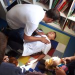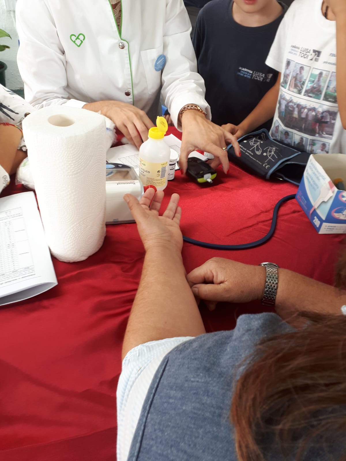 Rastreios (índice de massa corporal, diabetes, tensão etc.) feitos por uma mãe aos alunos da turma e à comunidade escolar.