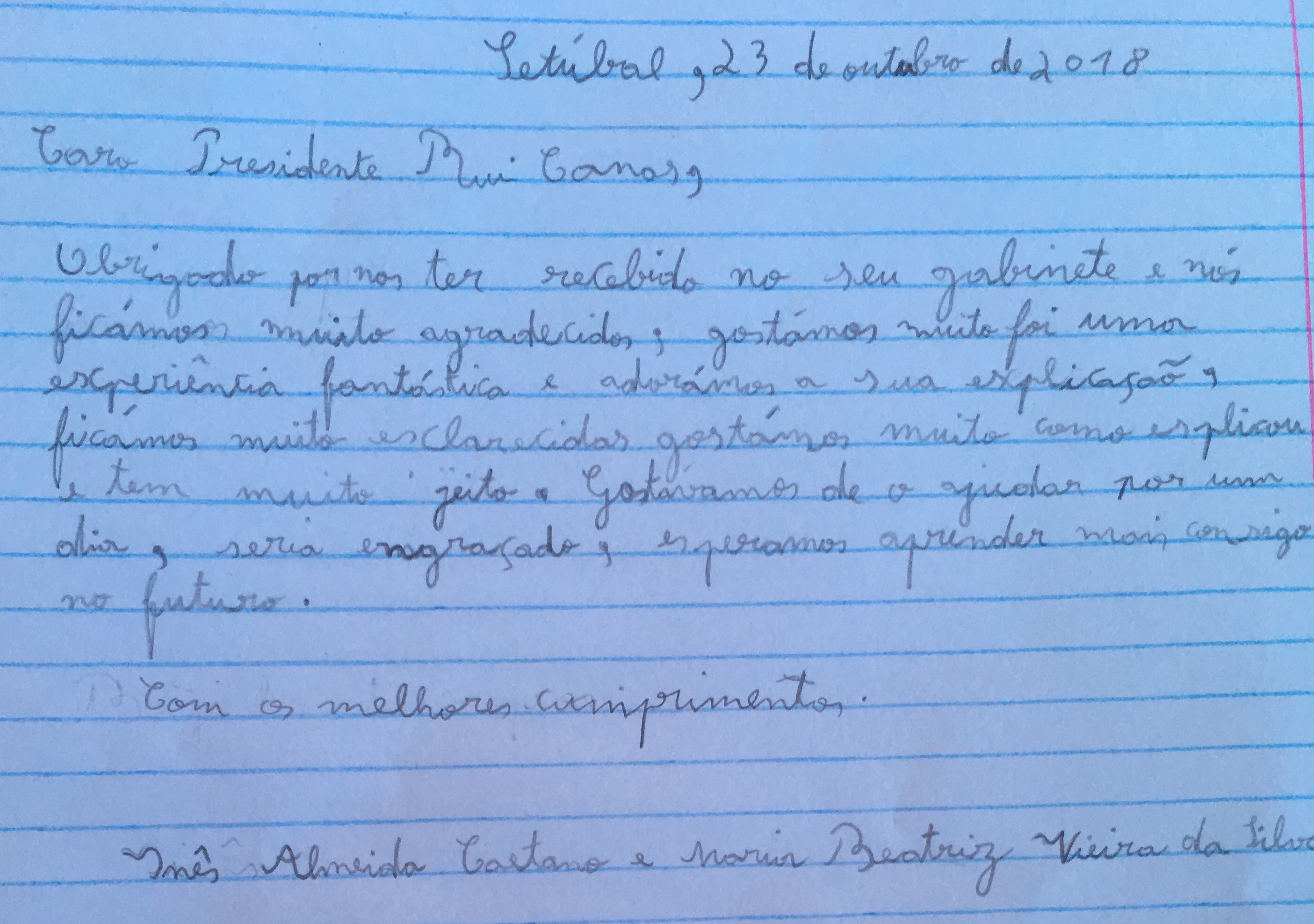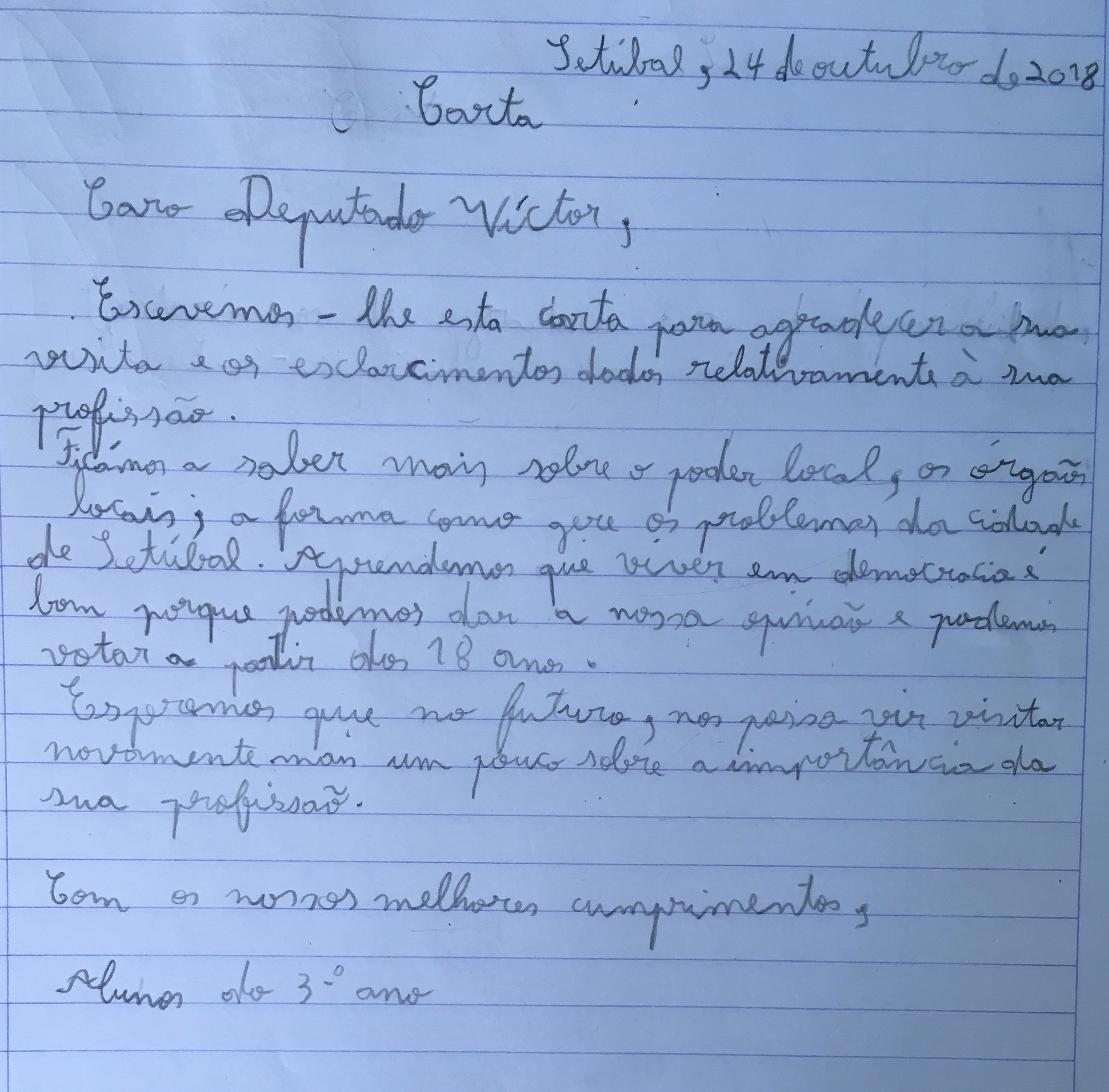 Aprender a fazer uma carta – Agradecimento ao Presidente da Junta Rui Canas e ao Deputado Victor Ferreira