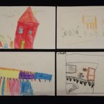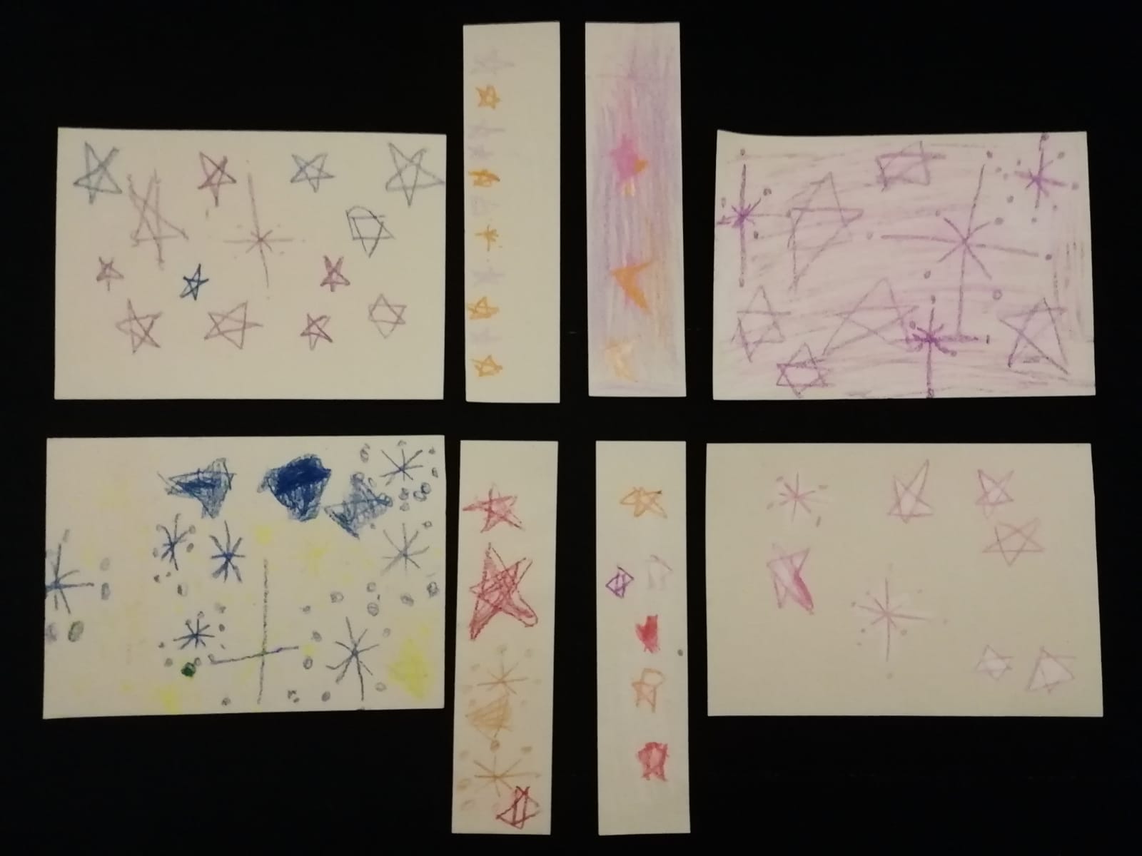 Educação Artística – Artes Visuais – Os alunos ilustraram um céu estrelado e fizeram ilustrações sobre a escola.