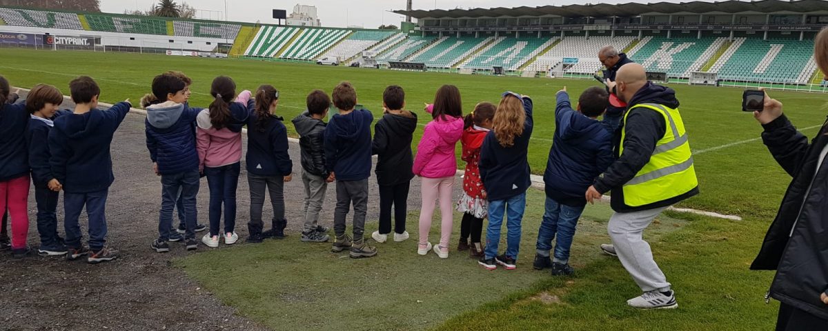 Educação Física: Visita de estudo ao Vitória Futebol Clube. Os alunos puderam falar com o Sr. Fernando Tomé, ver a sala dos trofeus, pisar o enorme relvado e conhecer o pavilhão António Velge.