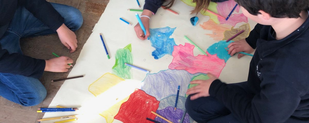 Descobrimos que os familiares de alguns colegas vieram de outras partes de Portugal, fizemos pesquisas sobre os distritos e sobre as regiões e foi assim que descobrimos os trajes regionais. Com as técnicas de desenho à vista e ilustração que temos aprendido nas Artes Visuais, reproduzimos estes trajes e construímos um mapa onde localizámos as antigas províncias e associamos cada roupagem ao seu território.