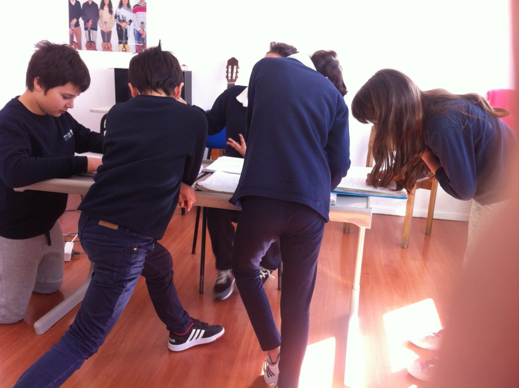 Relembrando os diversos tipos de texto estudados no português, criámos guiões para os diversos programas. Contabilizámos o tempo disponível e atribuímo-lo equitativamente entre os diversos grupos. Com a preciosa ajuda do que aprendemos na matemática, foi fácil planear e organizar a duração dos programas e analisar as informações recolhidas pela equipa responsável pelos inquéritos. Tivemos ainda a preciosa ajuda dos professores de música para recolher sons e criar separadores sonoros e da professora de inglês para criar um momento onde testámos os conhecimentos e fonética e ortografia em inglês.
