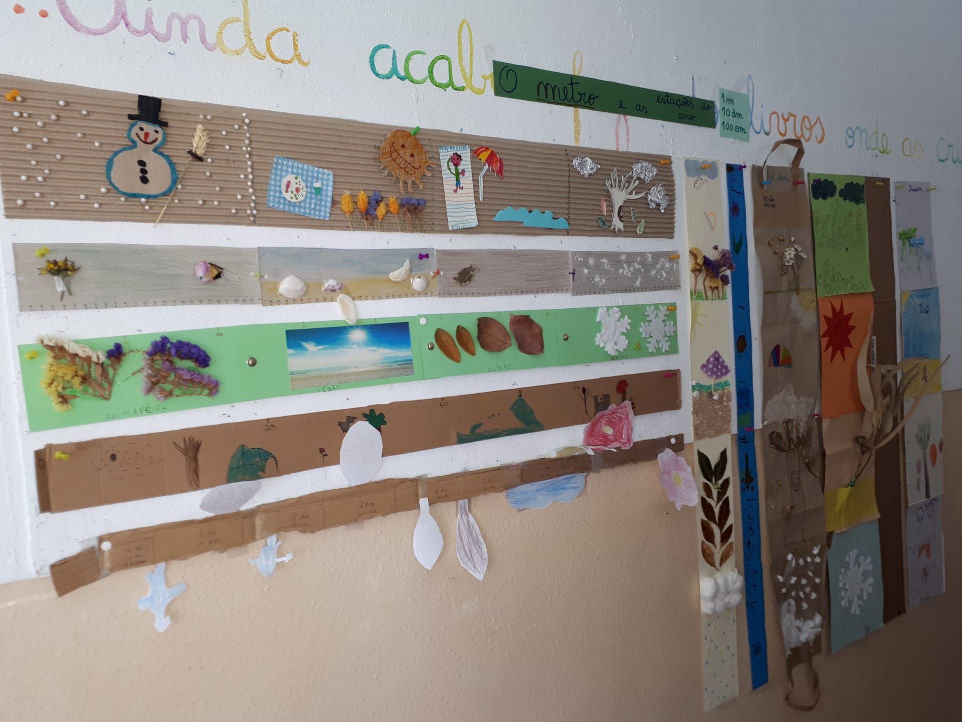 Matemática – Introdução ao estudo do metro (decímetros e centímetros). Cálculo de perímetros. Aula invertida- Construção de metros, em família, decorados com elementos da natureza das várias estações do ano.