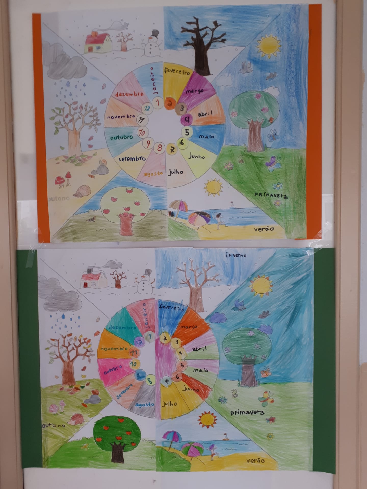 Estudo do Meio – Trabalho de pesquisa dos estados do tempo nas diferentes regiões do planeta. Construção de cartazes das 4 estações do ano, em grupo. Trabalho de pesquisa, a pares, sobre os animais que estivam e que hibernam.