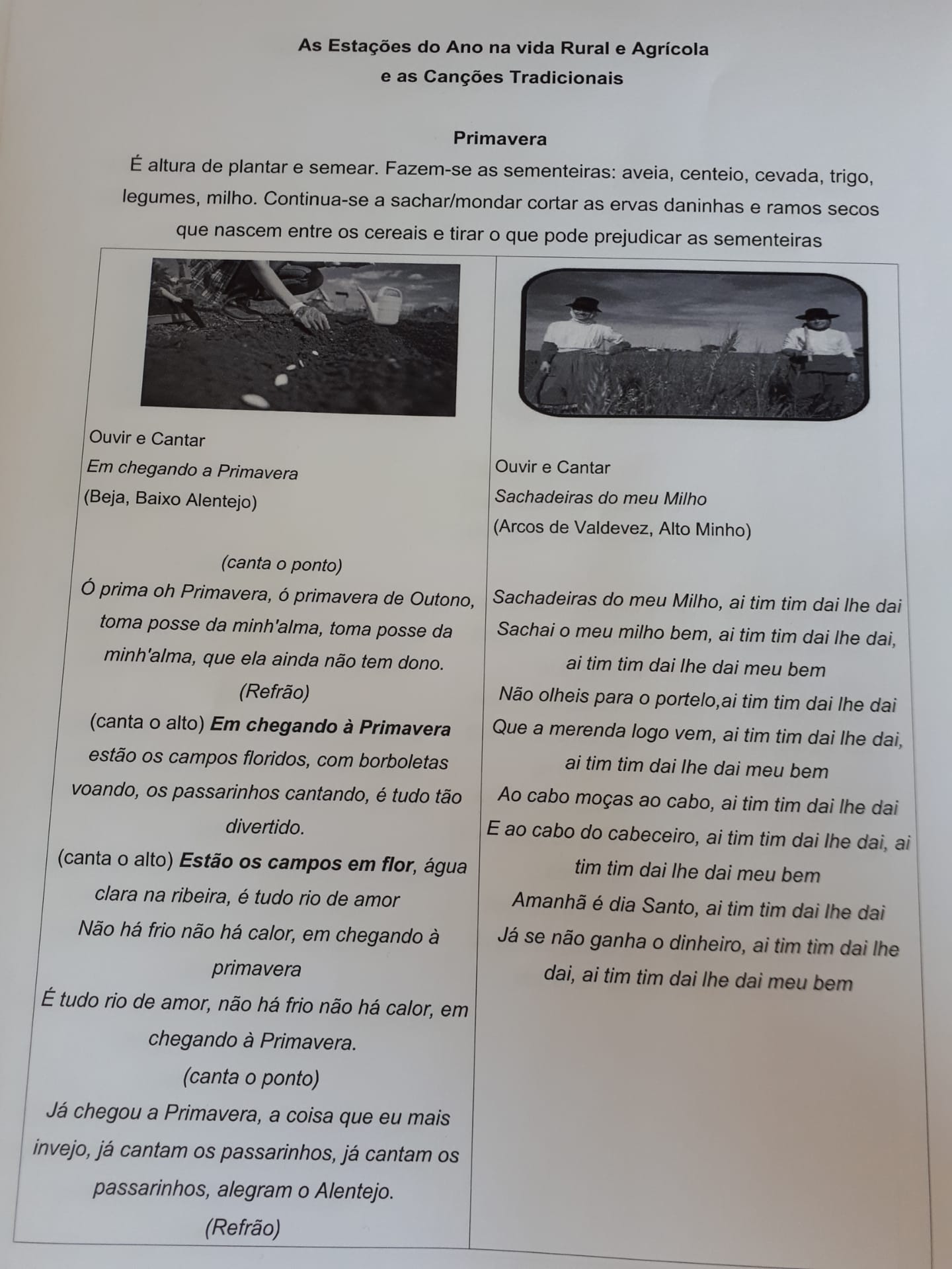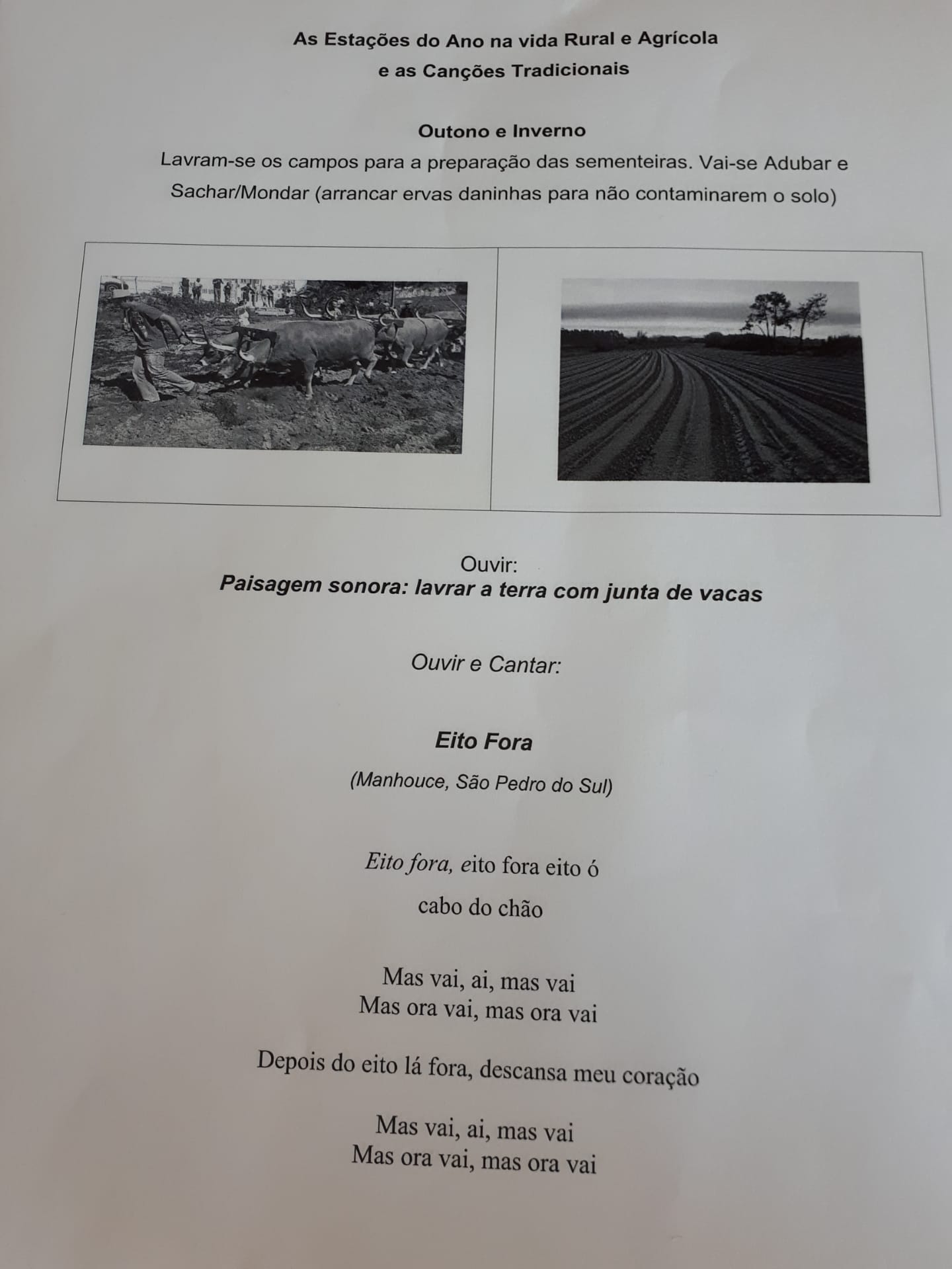 Música Tradicional – Abordagem às estações do ano, ao calendário agrícola e canções que lhe estão associadas – outono- inverno – Eito fora e paisagem sonora com o lavrar da terra.