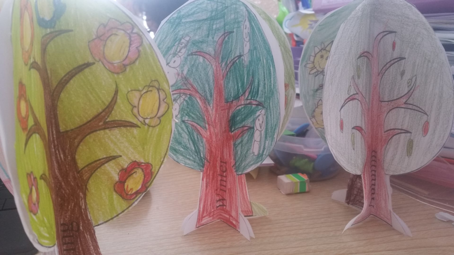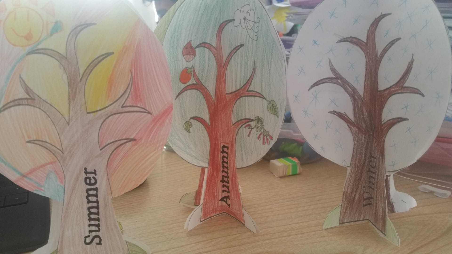 Inglês- Aprendizagem das estações do ano e construção de árvores sobre as mesmas.