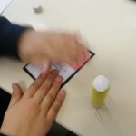 Nas artes visuais, construímos os manipuláveis que compõem o nosso jogo, articulando os nossos conhecimentos de geometria mais teóricos associados à matemática com a componente mais prática que se operacionaliza através da expressão plástica.