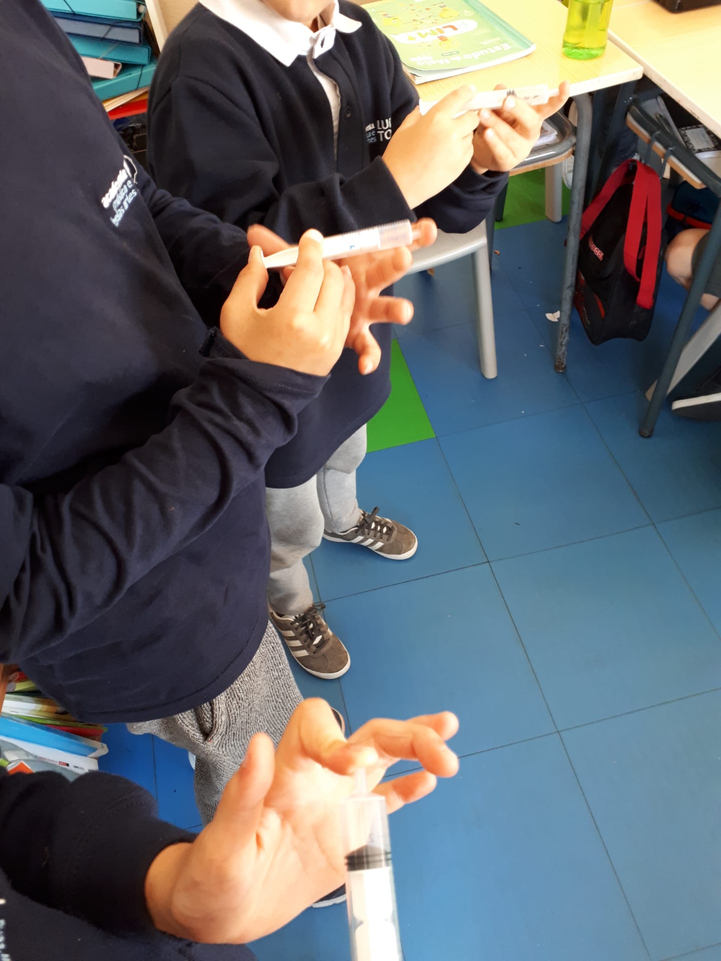 Experiências: Reconhecer o ar em movimento (ar e seringa); reconhecer que o ar tem massa (bola vazia e bola cheia e balança); reconhecer que o ar ocupa espaço (garrafa vazia e balão) e comportamento dos objetos na presença de ar quente e ar frio.