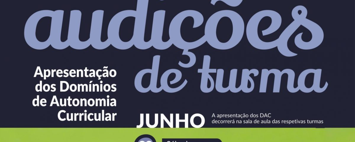 No âmbito da Autonomia e Flexibilidade Curricular as turmas do 1.º Ciclo farão audições por turma no dia 22 de junho. Pretendemos promover momentos de partilhas musicais dando oportunidade para que os alunos assistam a outros instrumentos.