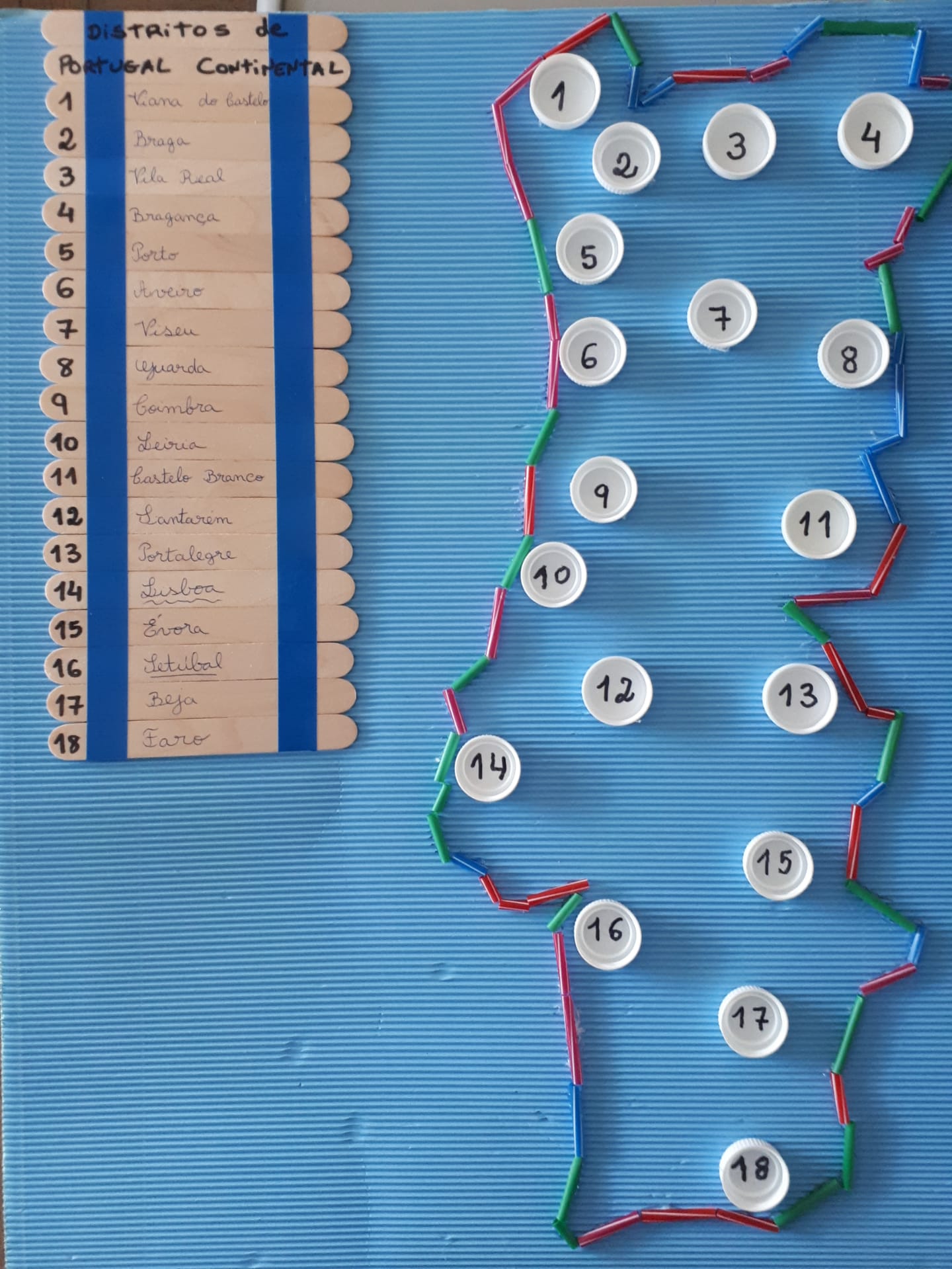 Artes Visuais – Construímos o mapa de Portugal Continental com materiais reciclados.