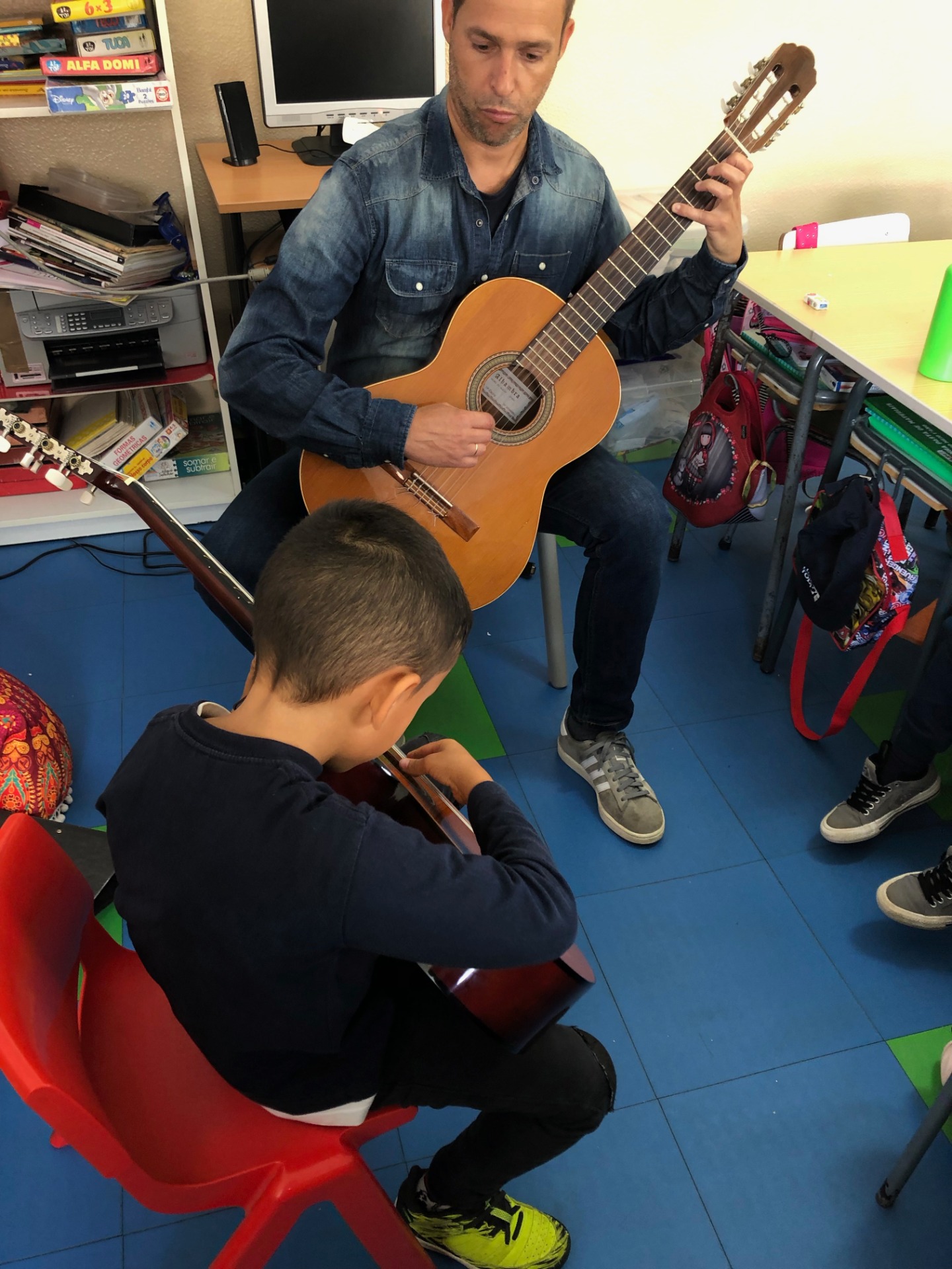 Para ouvirmos o som Si e Mi na Guitarra, o nosso colega Gonçalo veio tocar a Música “O conto do Pescador”, acompanhado pelo professor Nuno.