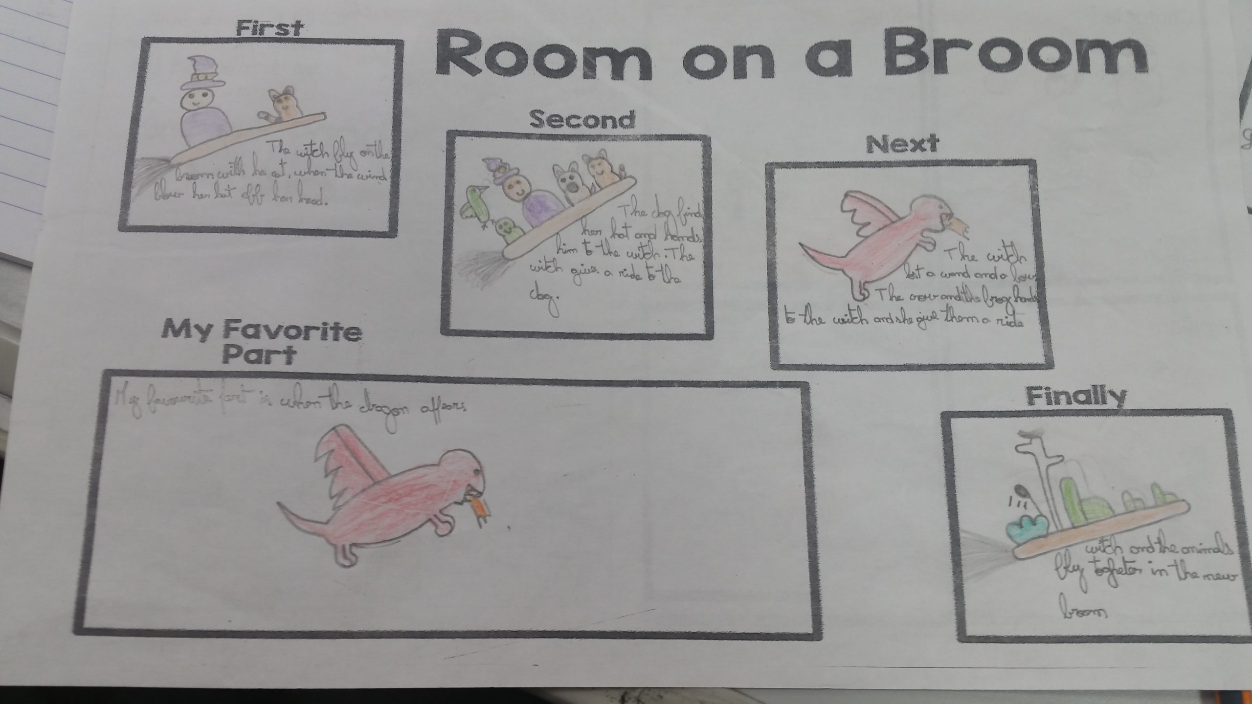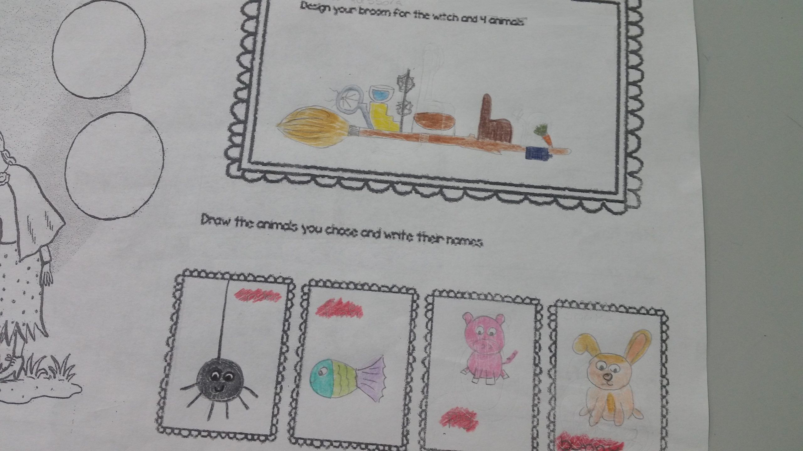 Inglês- Halloween – símbolos e tradições: vocabulário, construção de textos, elaboração e ilustração dos mesmos. Exploração da História “Room on the broom”. Exploração e execução vocal de canções de Halloween para o teatro apresentado na festa de Halloween.