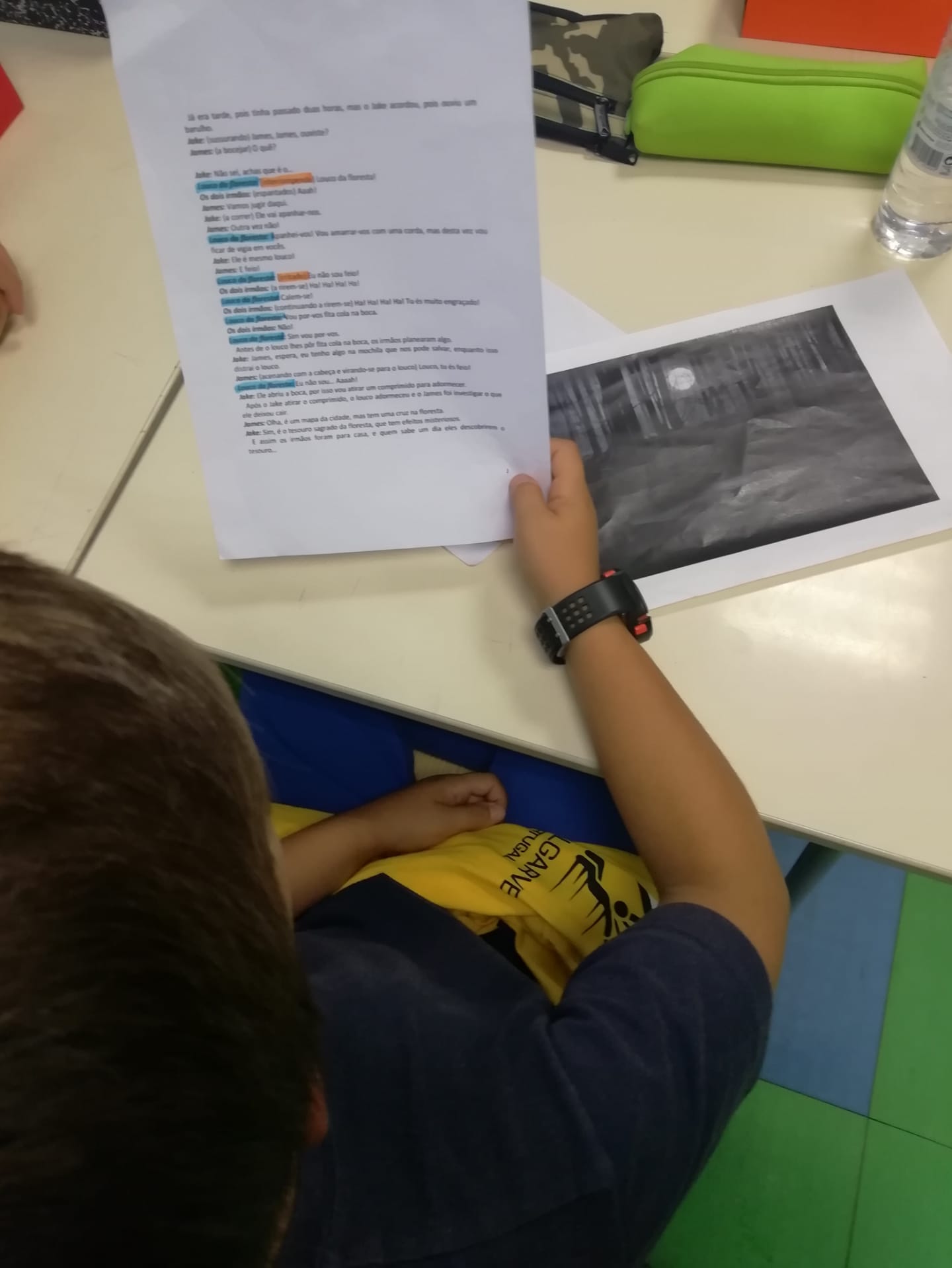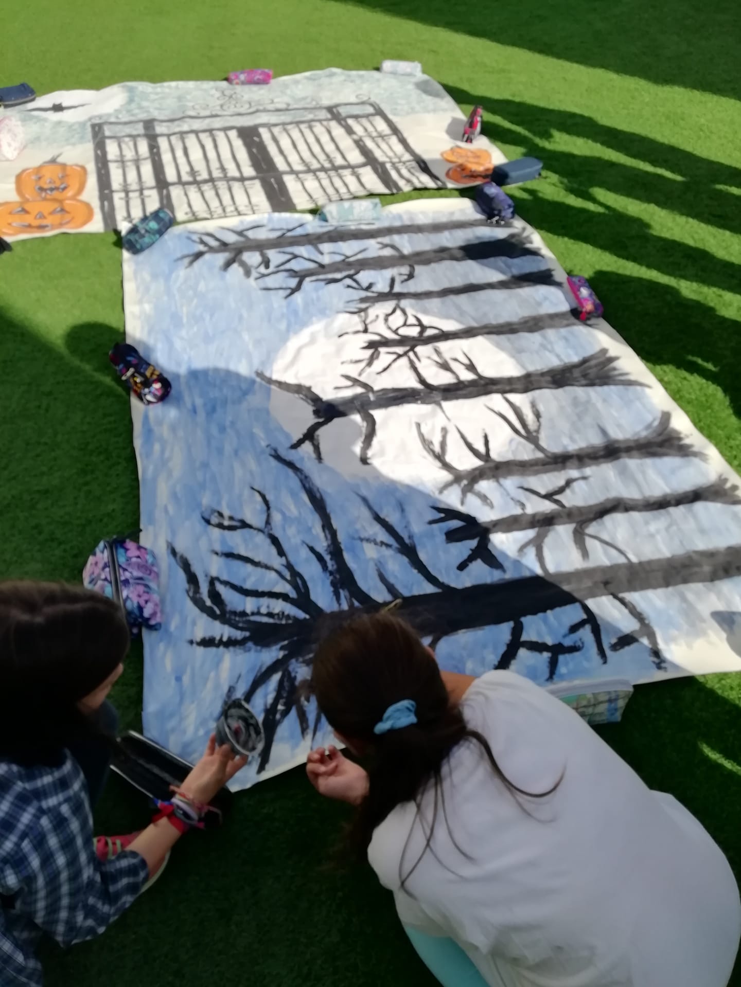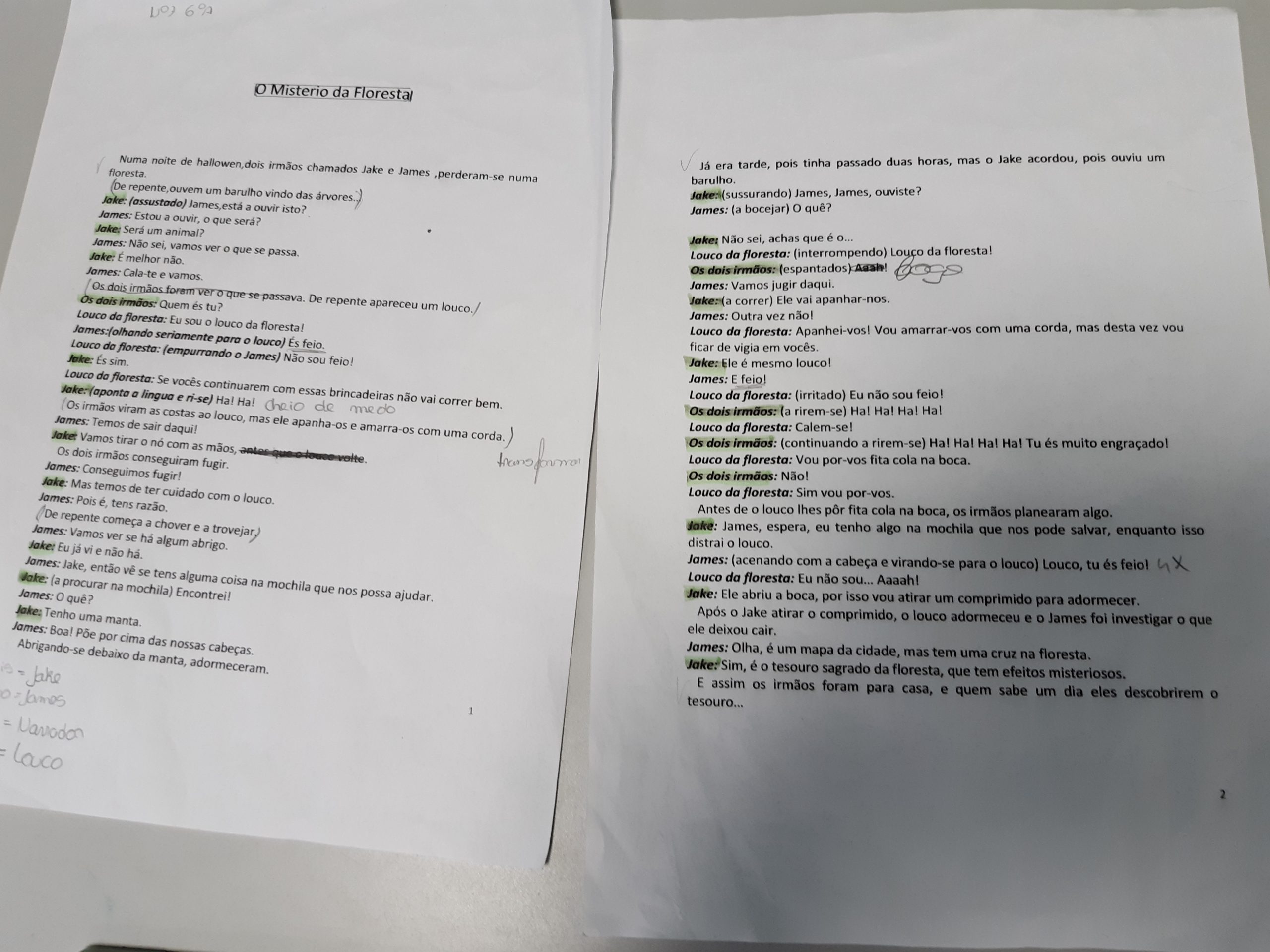 Português e construção dos mesmos. Ensaios das peças de teatro para a festa de Halloween.