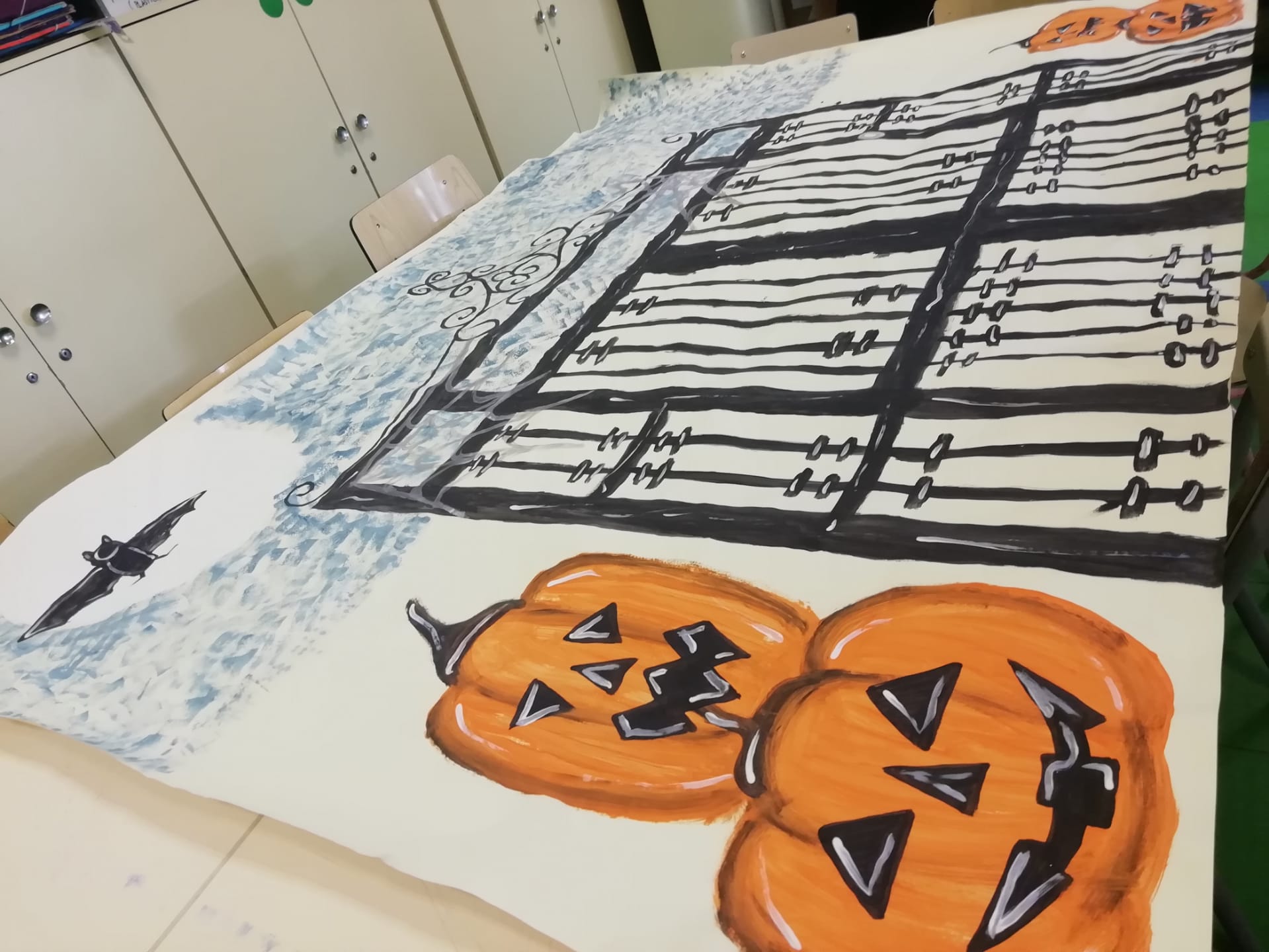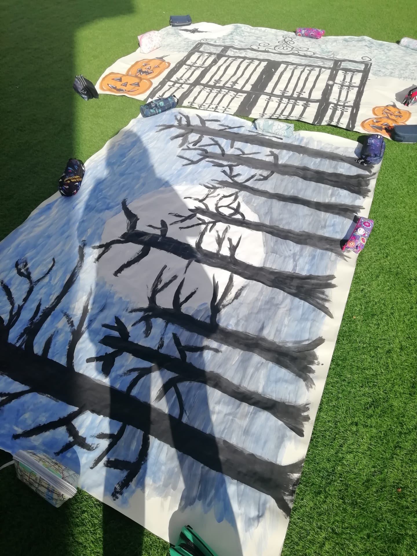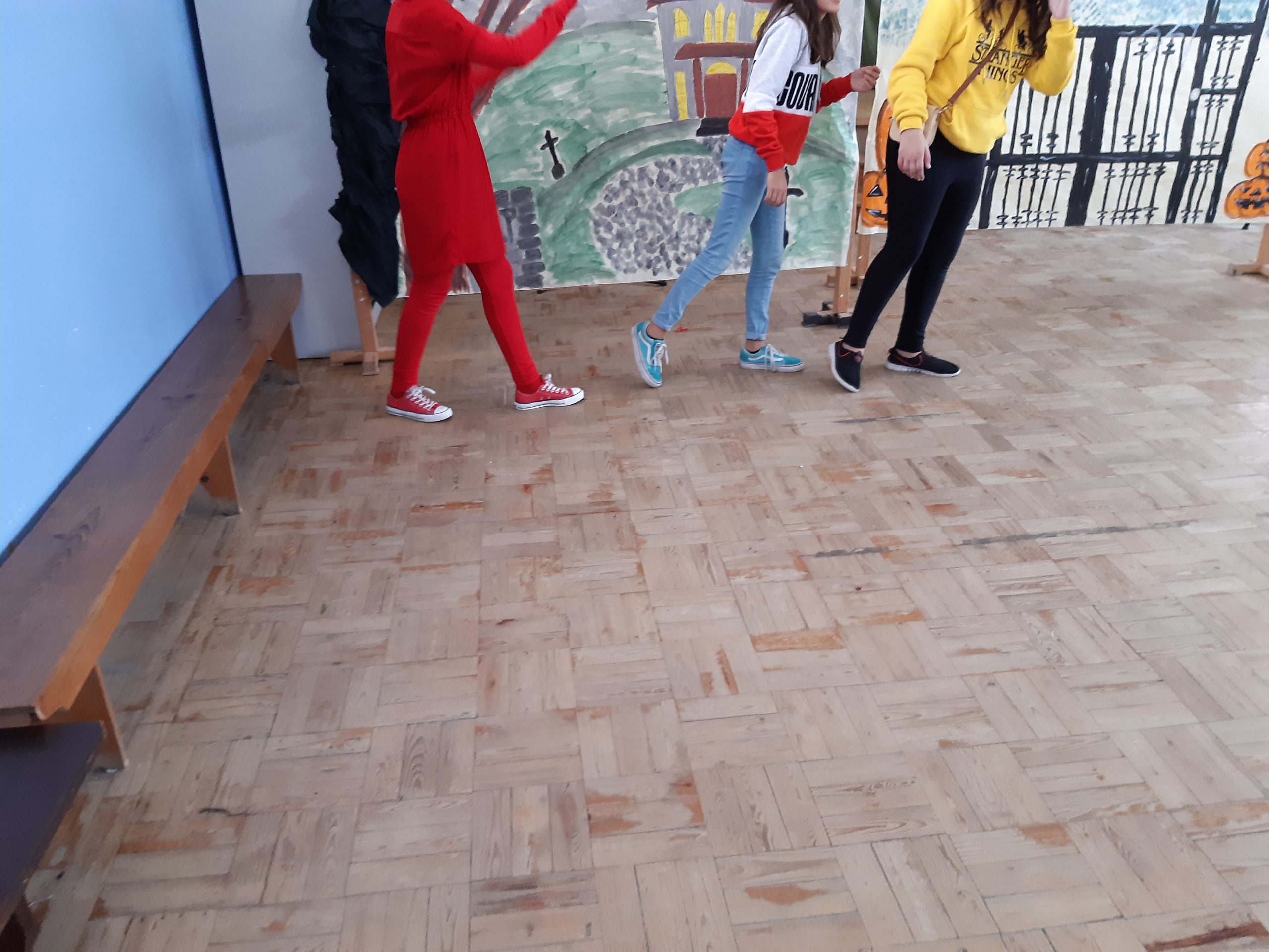 Português e construção dos mesmos. Ensaios das peças de teatro para a festa de Halloween.