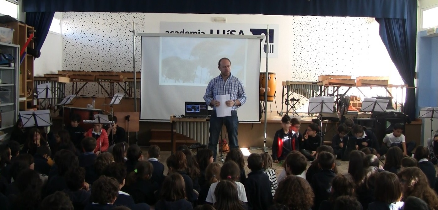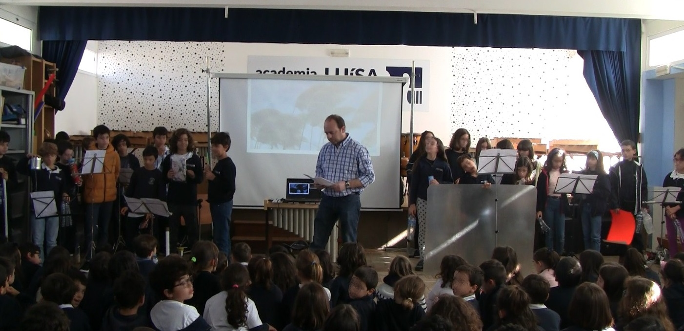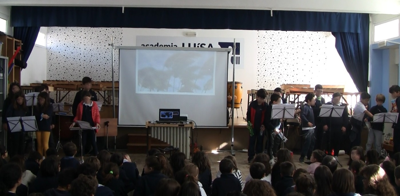Oficina de Música – Efeitos sonoros. Construção de sons não convencionais com a reprodução de sons da floresta. Apresentação, do trabalho musical realizado, aos alunos do 1º ciclo.