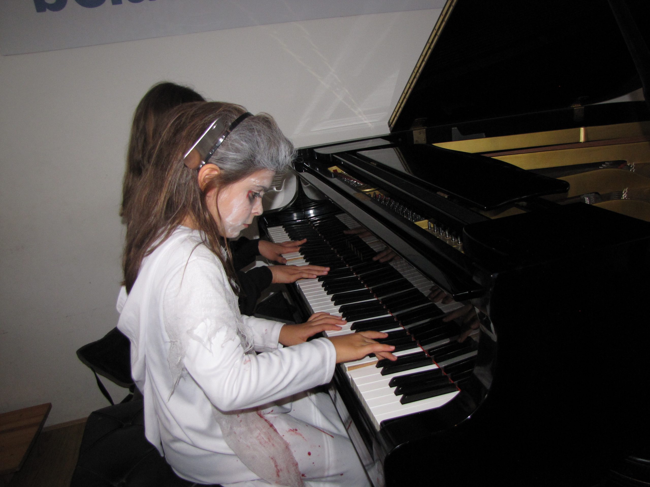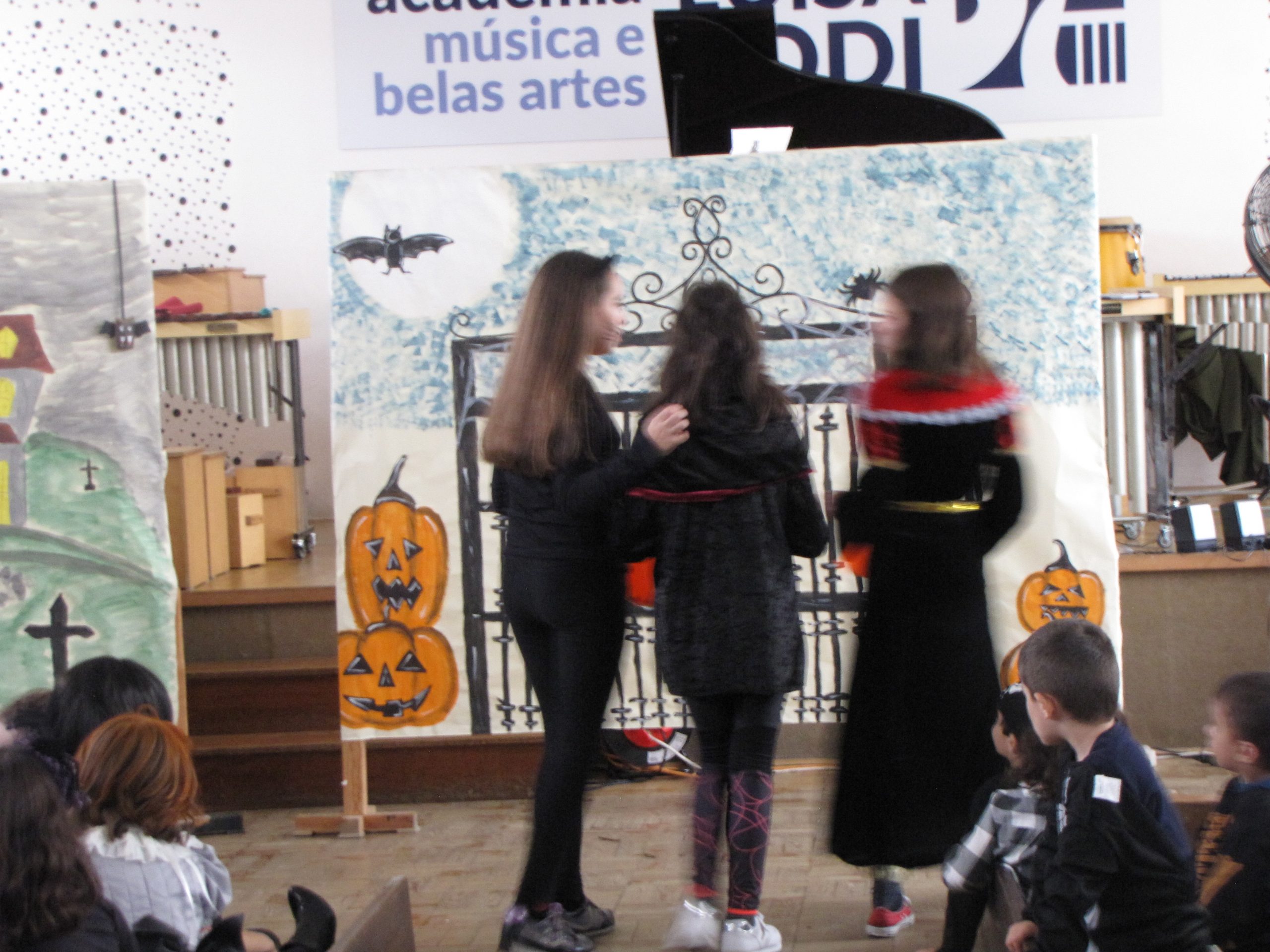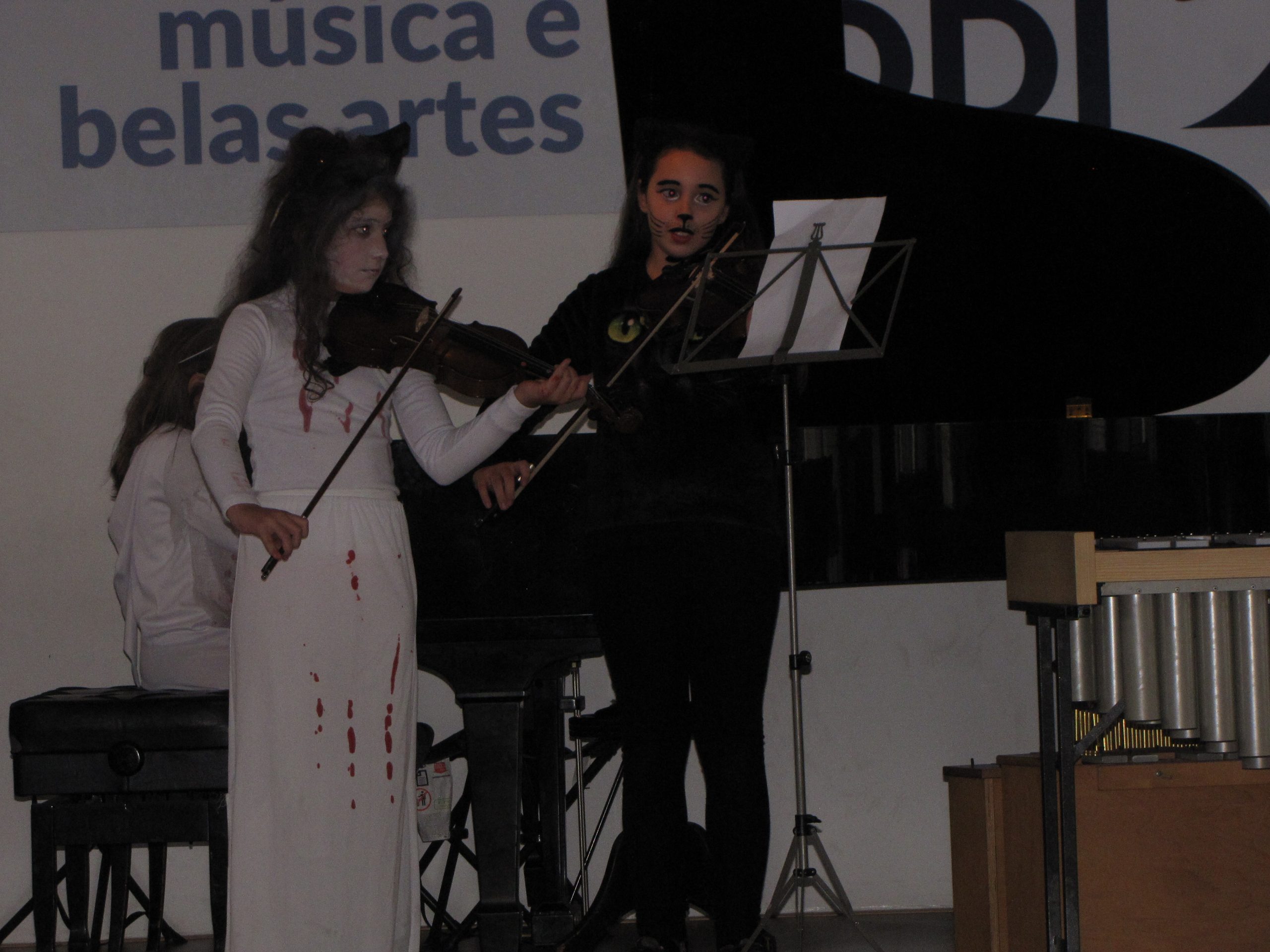 Piano e Violino- Execução da peça “This is Halloween” com alunos de violino e piano do 5º e 6º anos. Apresentação da peça na festa de Halloween.