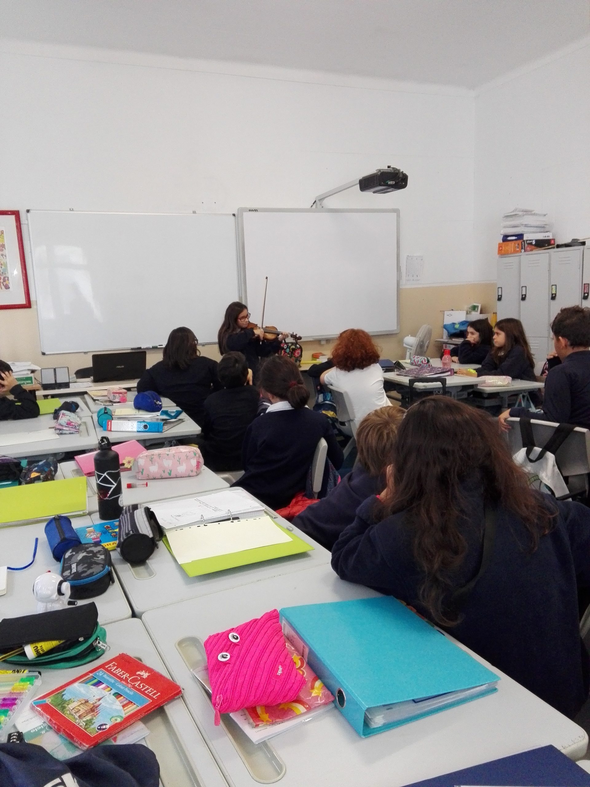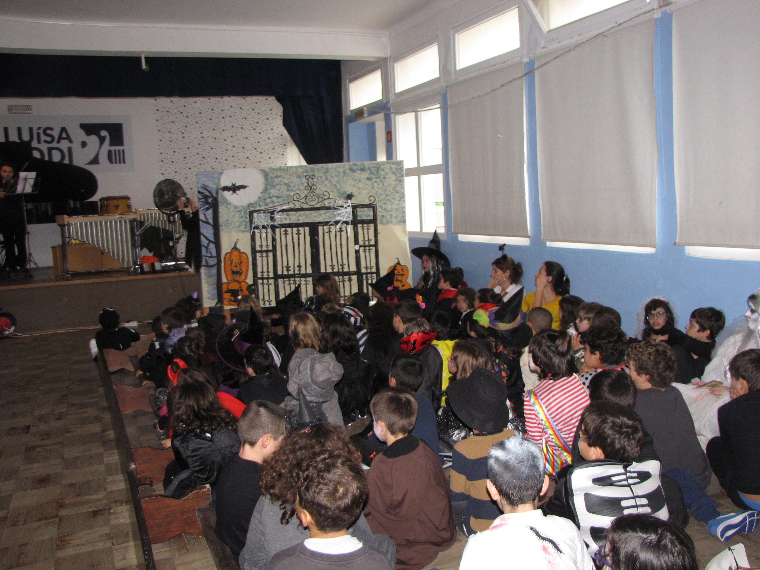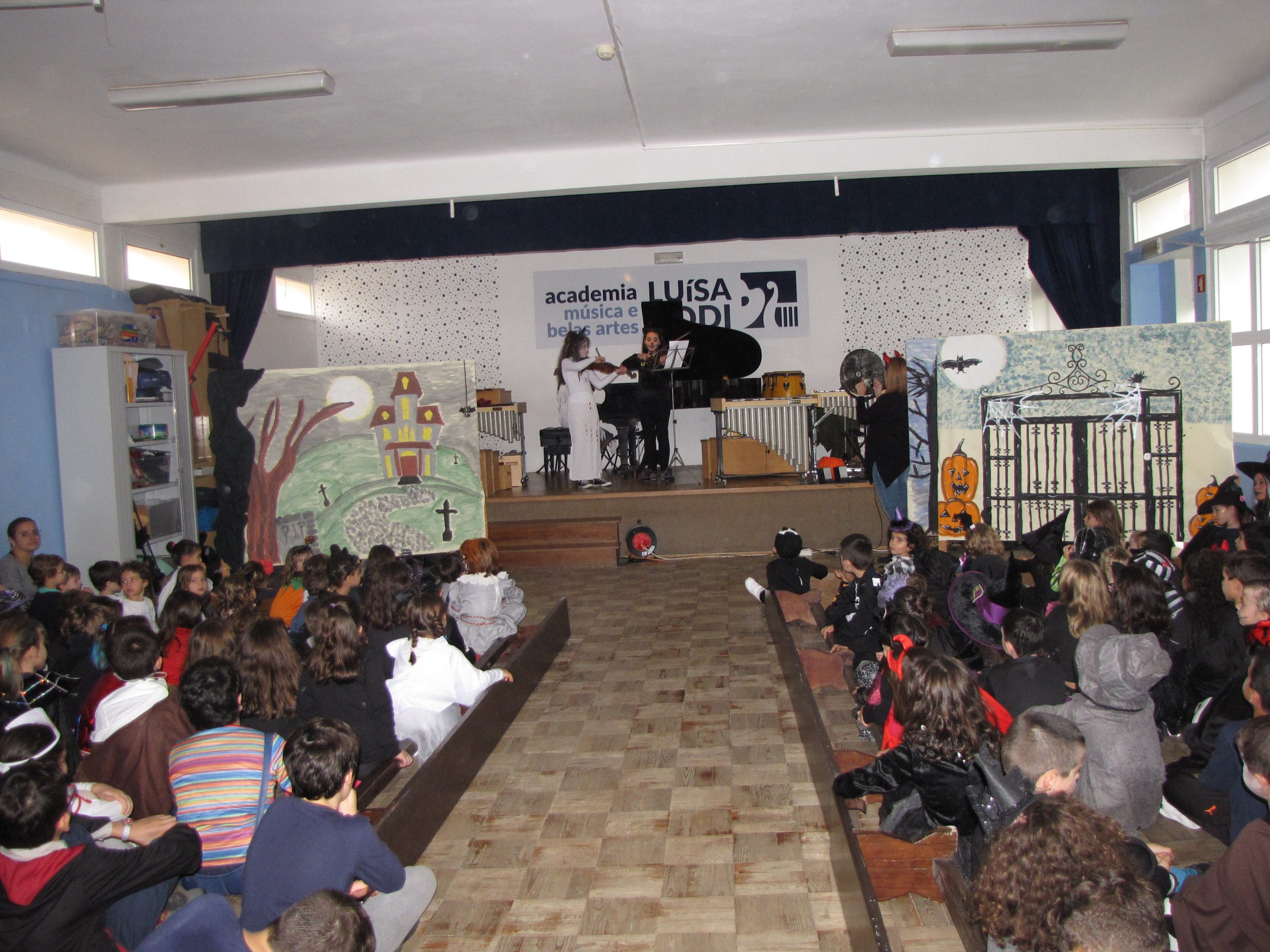 Piano e Violino- Execução da peça “This is Halloween” com alunos de violino e piano do 5º e 6º anos. Apresentação da peça na festa de Halloween.
