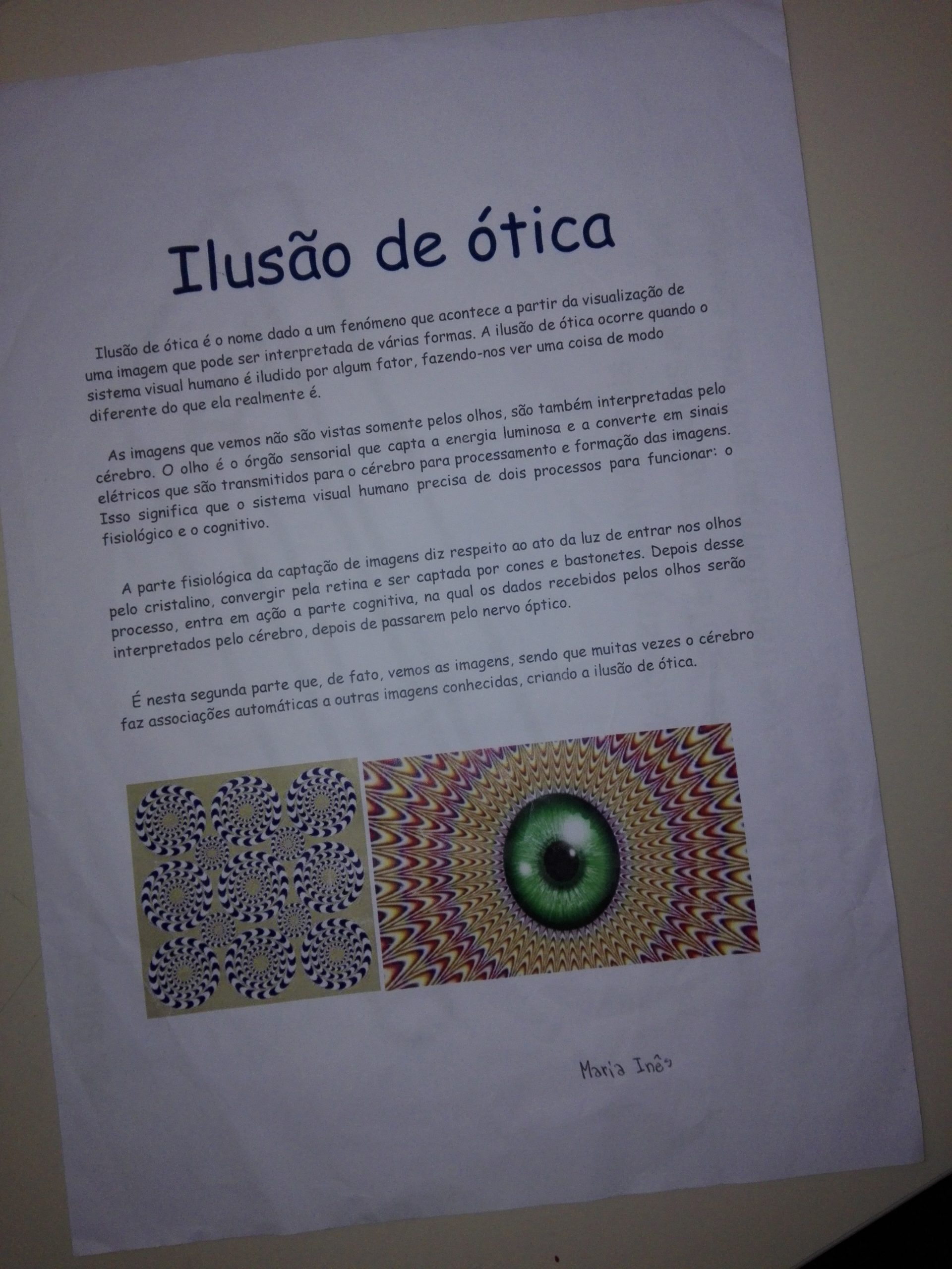 Matemática- Pesquisa de imagens referentes a ilusões de ótica. Observação e discussão sobre a relação entre a ilusão de ótica e a geometria.