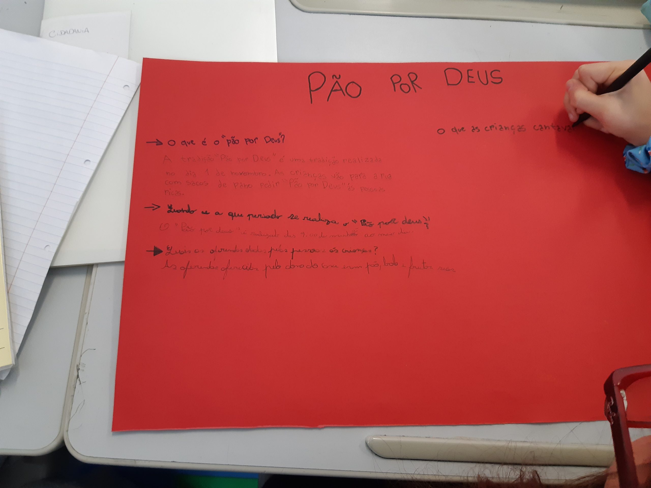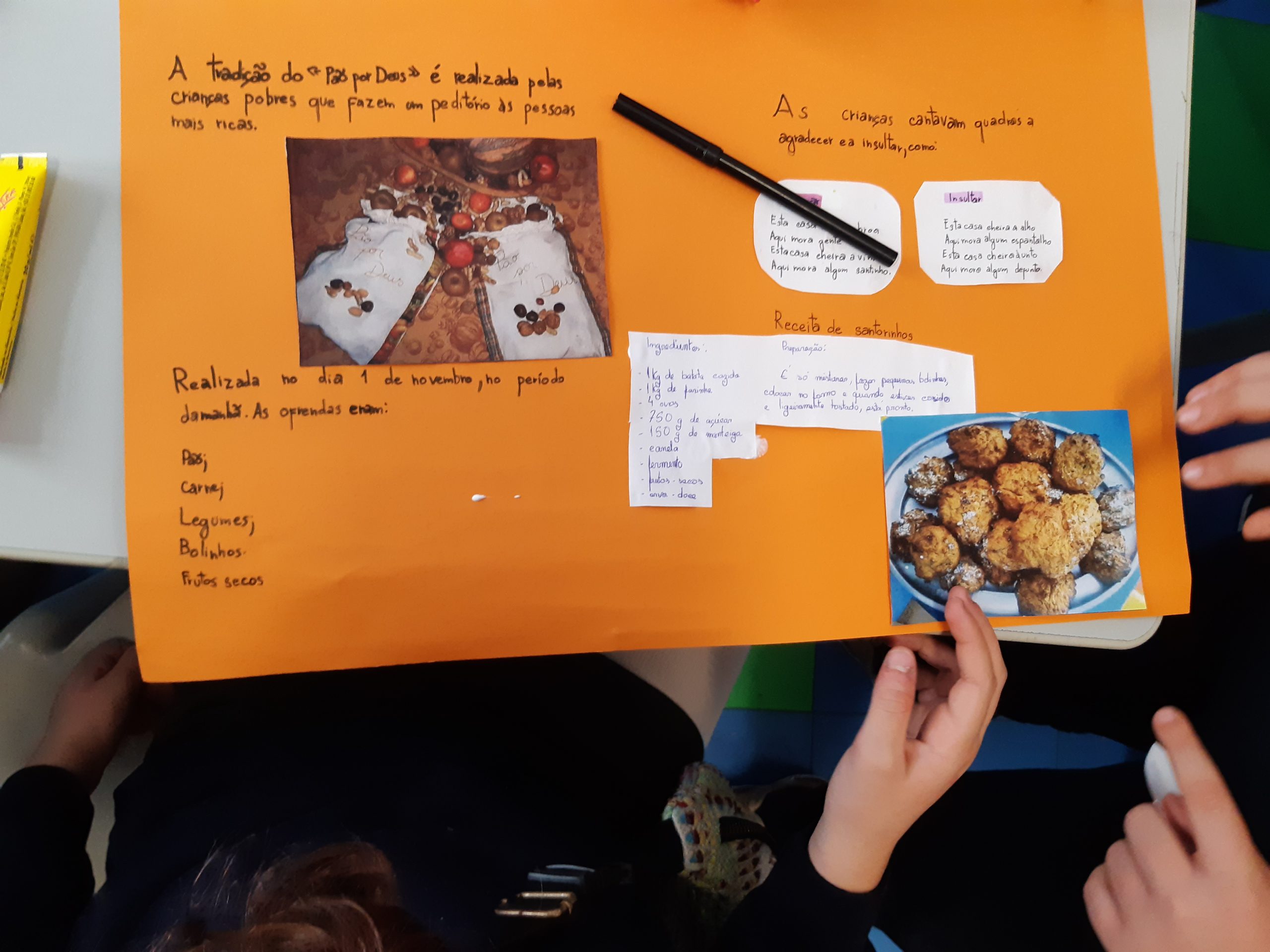 Português – Exploração de fábulas e lendas, bem como as respetivas caraterísticas. Análise, no texto narrativo, dos tipos de narrador, tempo e espaço, com especial destaque à paráfrase. Estudo de sinónimos, antónimos, nomes e determinantes. Exercícios de oralidade. Pesquisa e elaboração de cartazes sobre a tradição portuguesa do “Pão por Deus”.