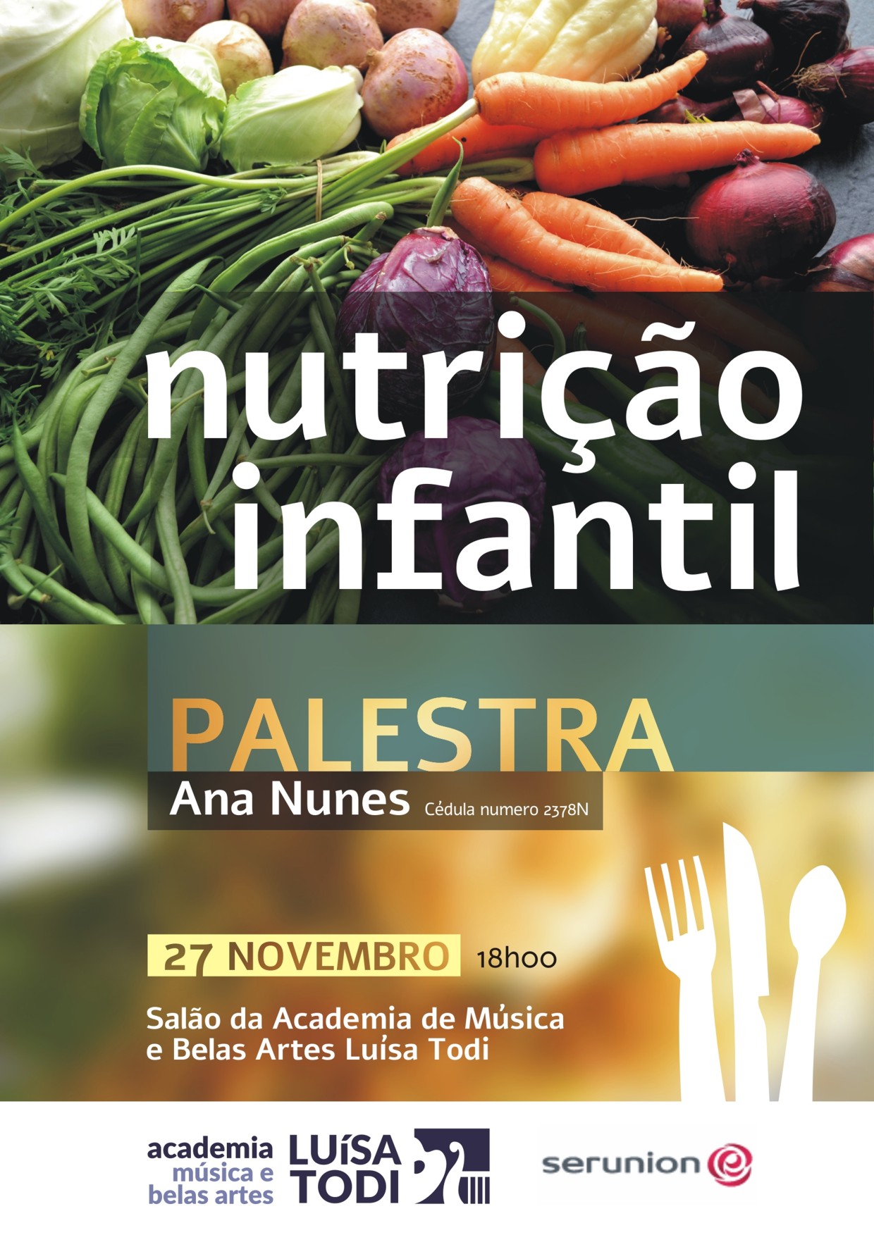 No dia 27 de novembro de 2019, pelas 18h00, no Salão da Academia de Música e Belas Artes Luísa Todi, terá lugar a Palestra sobre Nutrição Infantil. Este será da responsabilidade da nutricionista Ana Nunes. Esta palestra surge da preocupação em respondermos a algumas questões efetuadas por pais, alunos e professores aquando do preenchimento dos questionários de satisfação à comunidade educativa no final do ano letivo anterior. Esta palestra será uma das ações do Plano de Melhoria da Academia de Música e Belas Artes Luísa Todi.