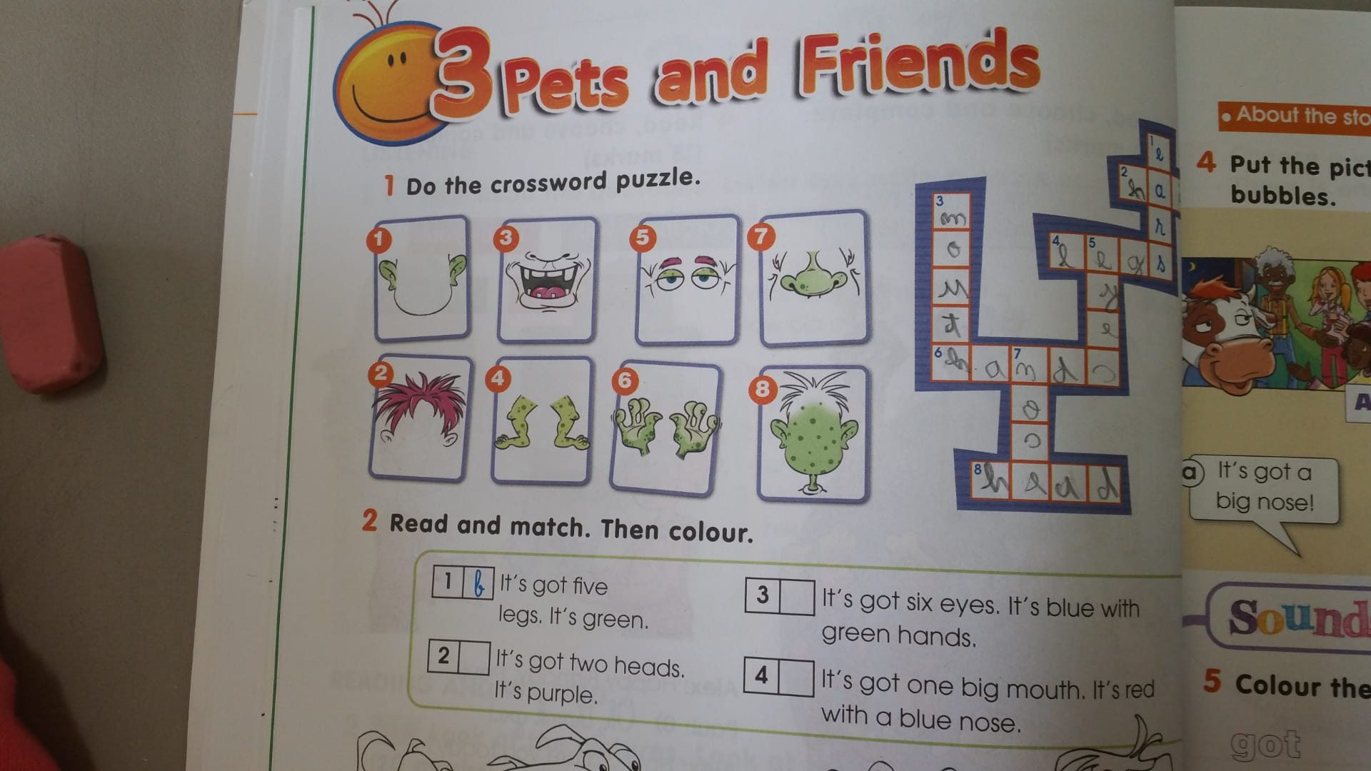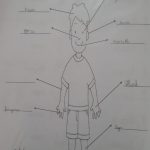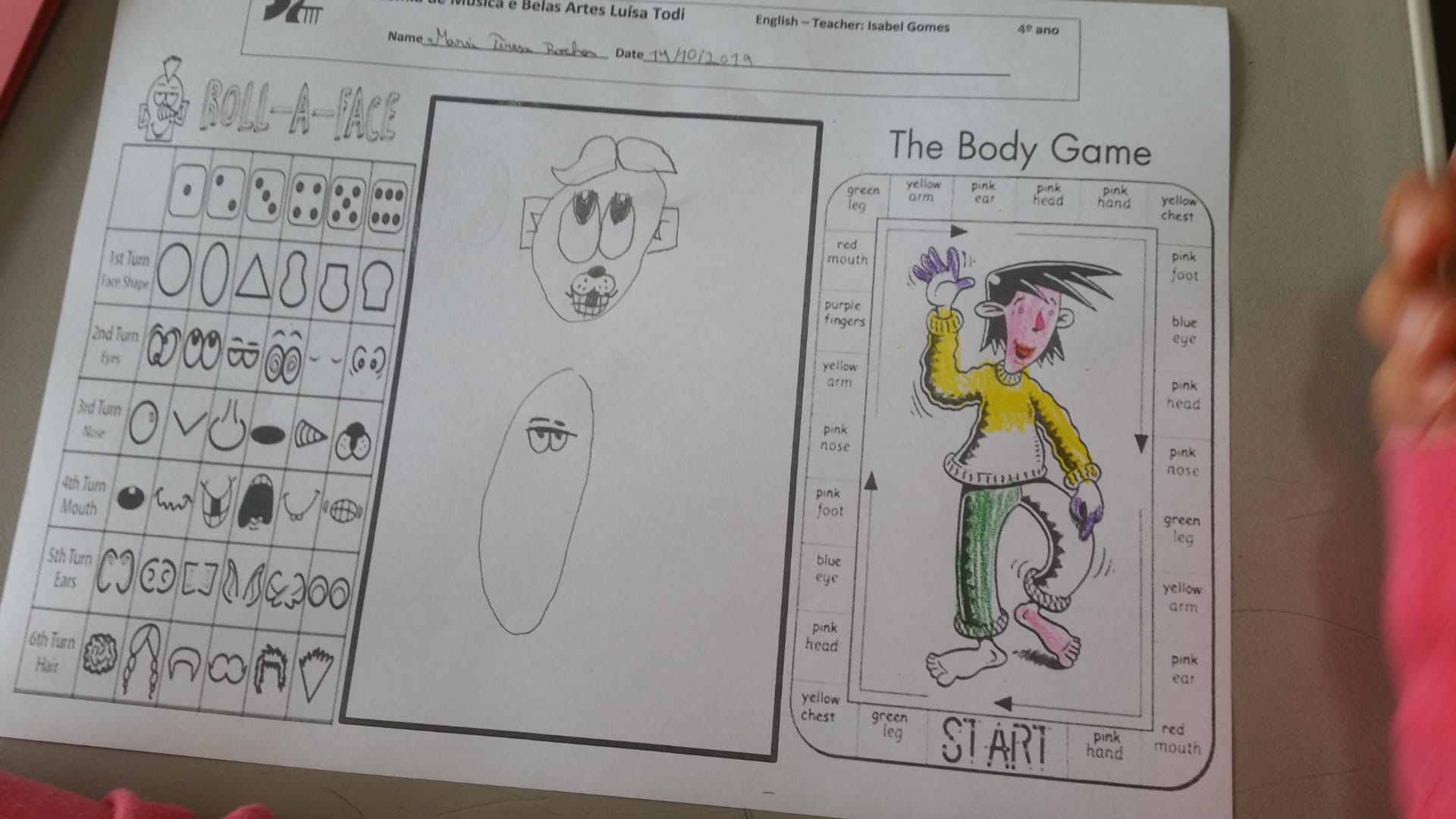 Inglês – Aprendemos a descrição física, com desenho e descrição de monstros.