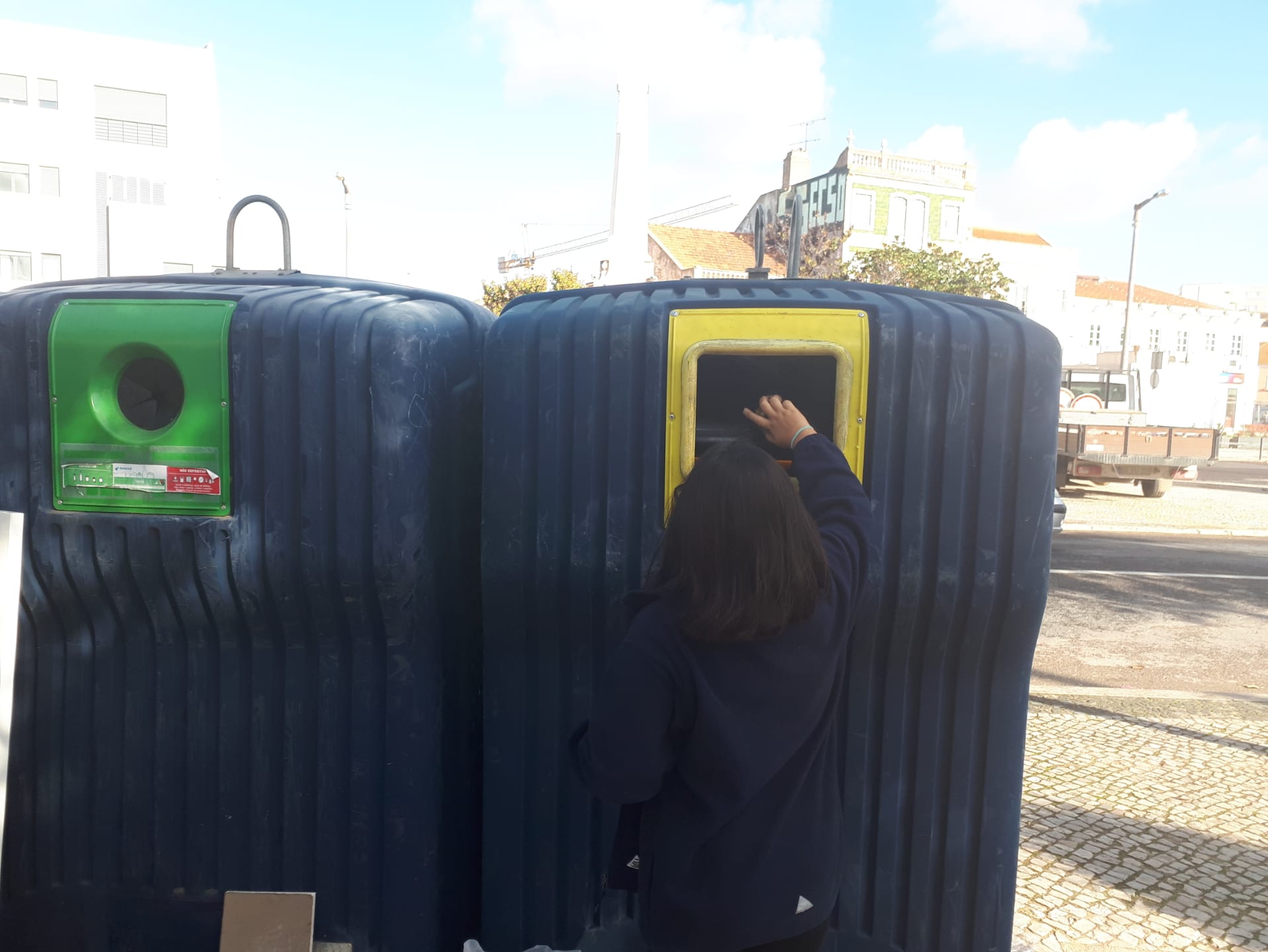 Matemática – Comemorámos o dia mundial da alimentação saudável e trouxemos de casa – embalagens, caixas, copos, latas vazias etc. maioritariamente de produtos alimentares. Assim trabalhámos os sólidos geométricos e revimos os polígonos. Depois de consolidados os conhecimentos fomos colocar os materiais de estudo no ecoponto (abordando assim o tema de cidadania: educação ambiental)