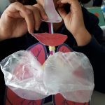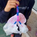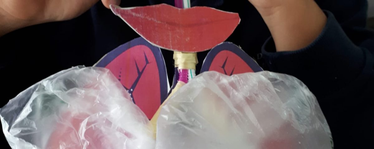Artes visuais – Construímos um sistema respiratório com materiais reciclados.
