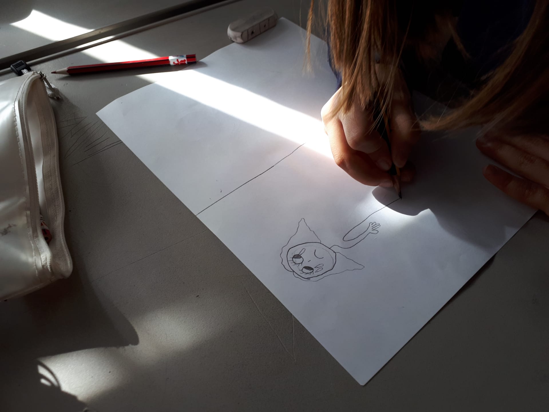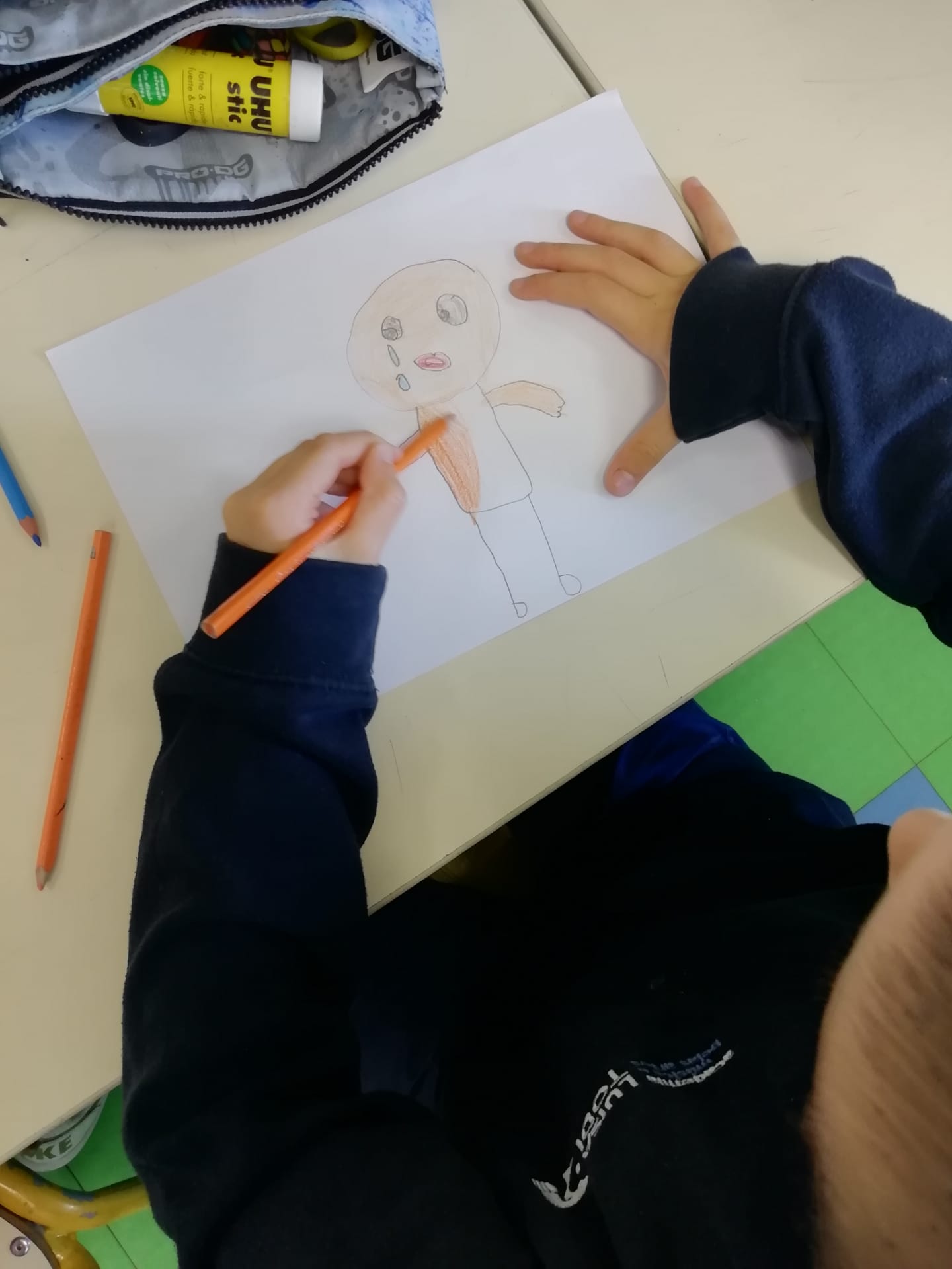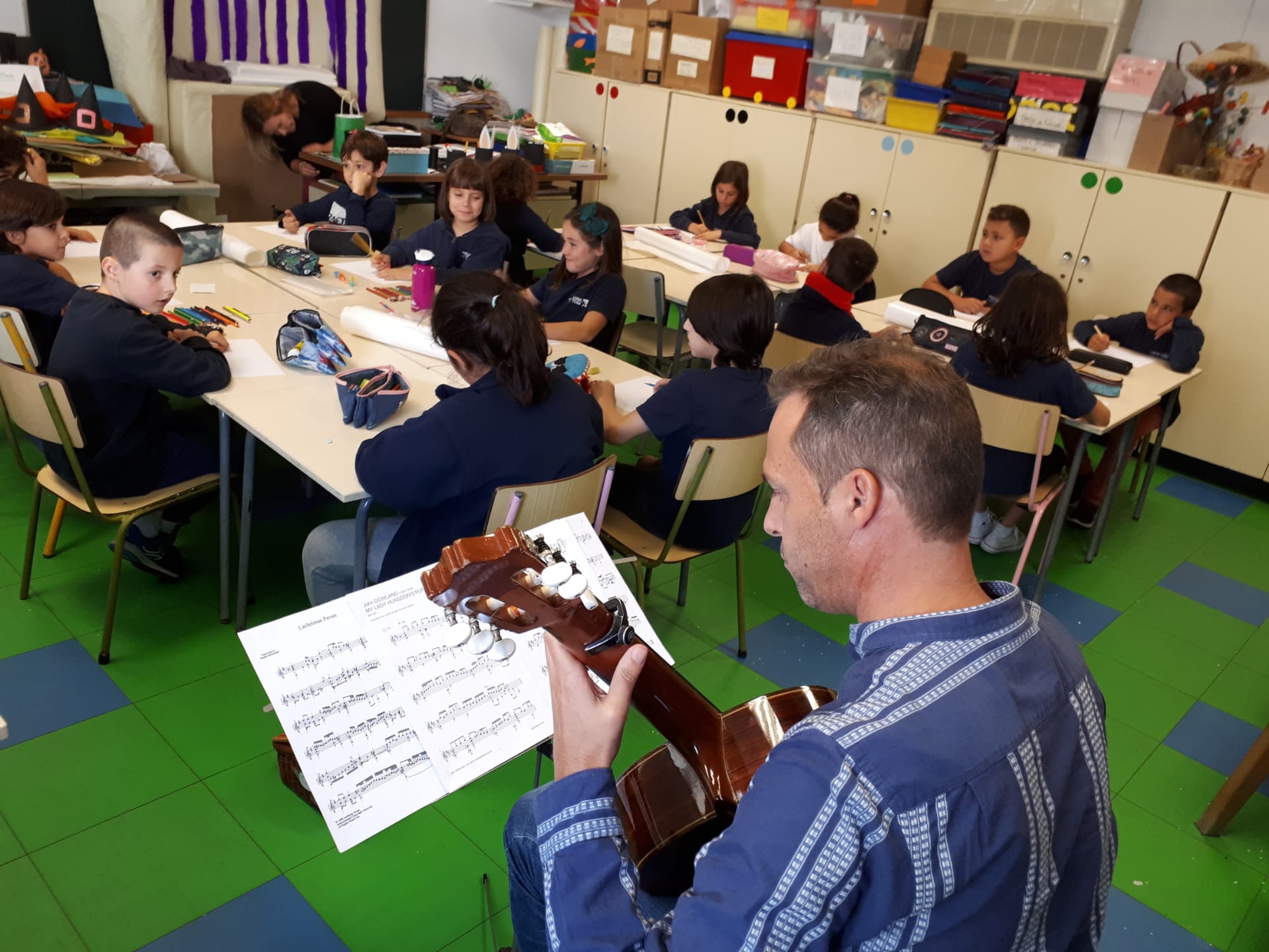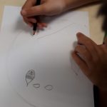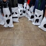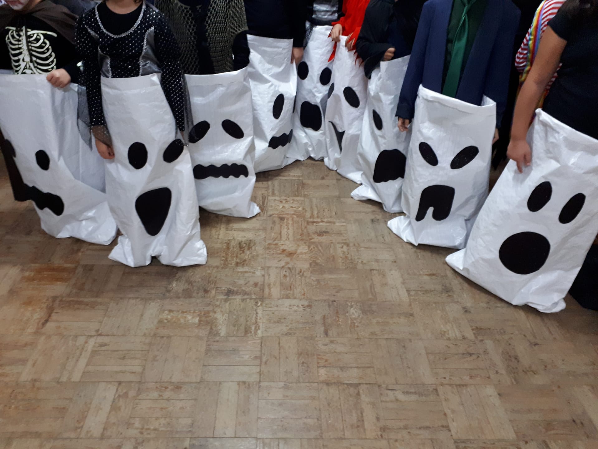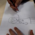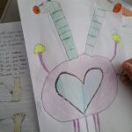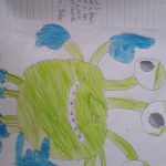 Artes Visuais – Desenhámos o que sentimos ao ouvir duas músicas tocadas pelo professor de guitarra, Nuno Santos. Criámos o jogo dos sacos – Fantasmas, e o jogo de bowling – monstros, com várias expressões faciais.