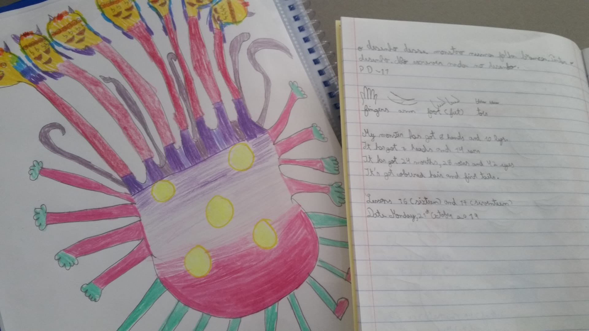 Português – Fizemos a leitura e interpretação da história “Monstro das cores” e conversámos sobre medos e sentimentos. Ouvimos uma história de Halloween “ Carlota Barbosa a bruxa medrosa” e escrita de um texto de Halloween.