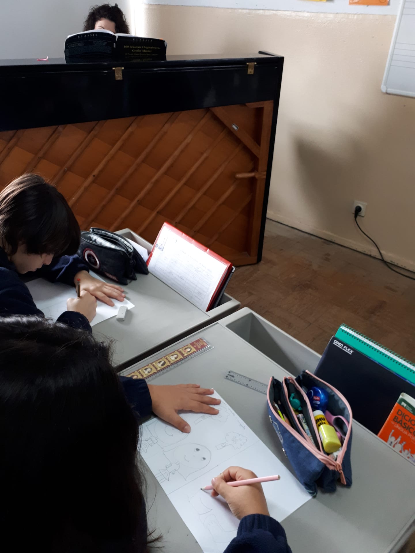 Instrumentos – Ouvimos músicas renascentistas tocadas pela professora de piano, Mariana Costa e desenhámos o que sentimos durante a audição das mesmas.