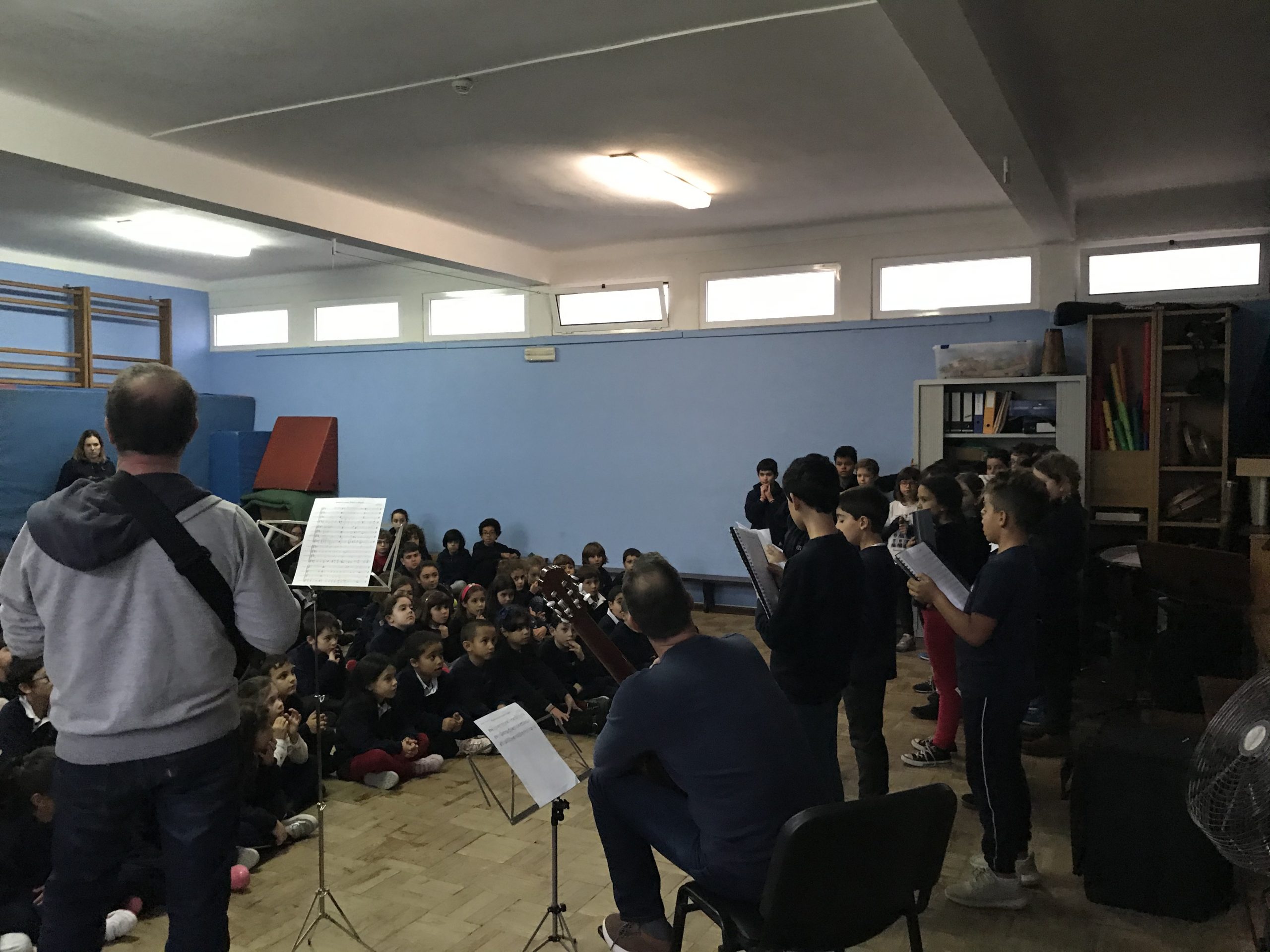 – Cantar música renascentista com instrumentos de percussão, guitarra e flauta
