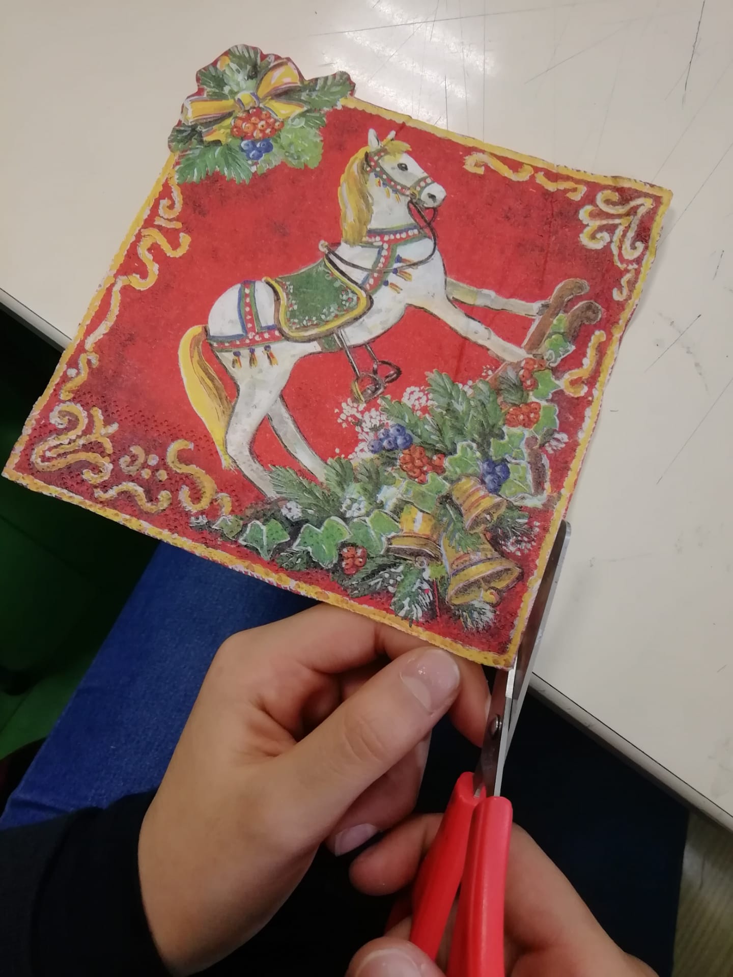 Educação Visual – Elaboração da prenda de Natal com decoração de um prato com a técnica do guardanapo de papel. Elaboração de um envelope como embrulho, também decorado por cada aluno com técnicas de desenho e pintura com materiais riscadores.