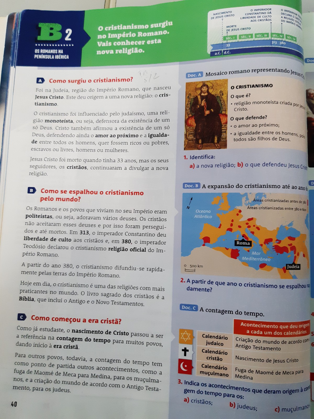 História –”Os Romanos Península Ibérica”, com especial enfoque no cristianismo/era cristã e na conversão das datas em séculos.