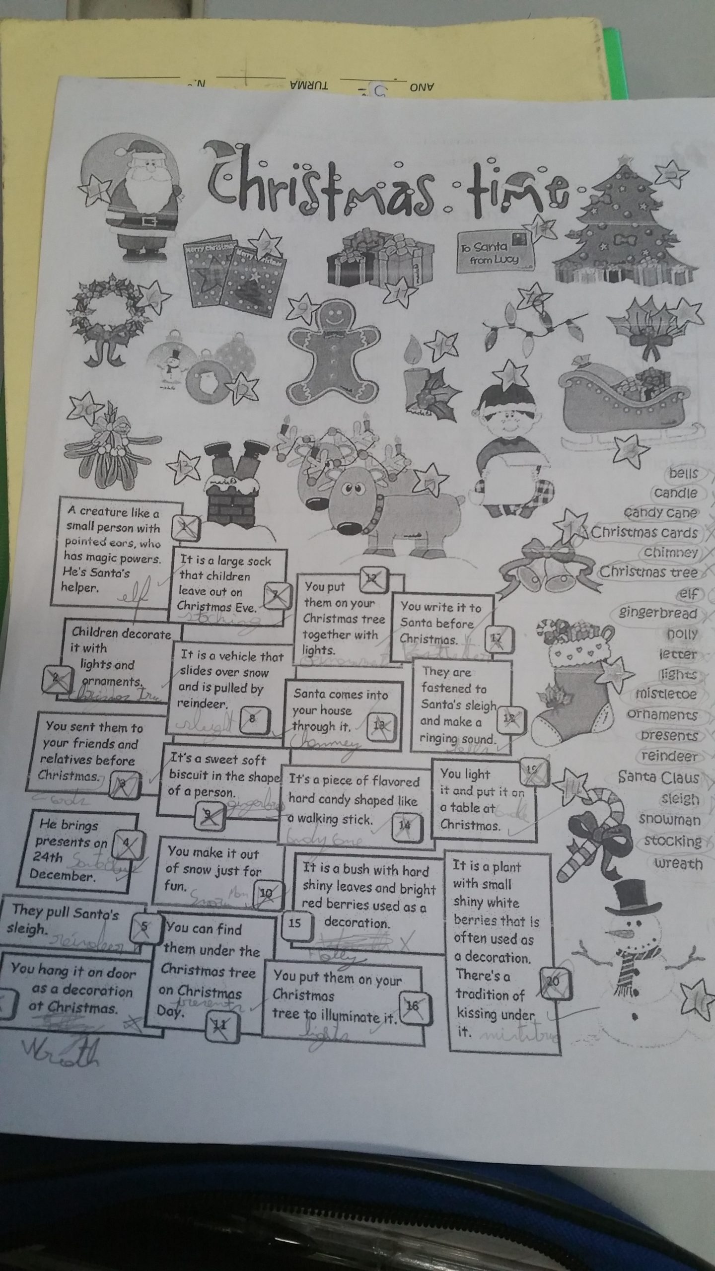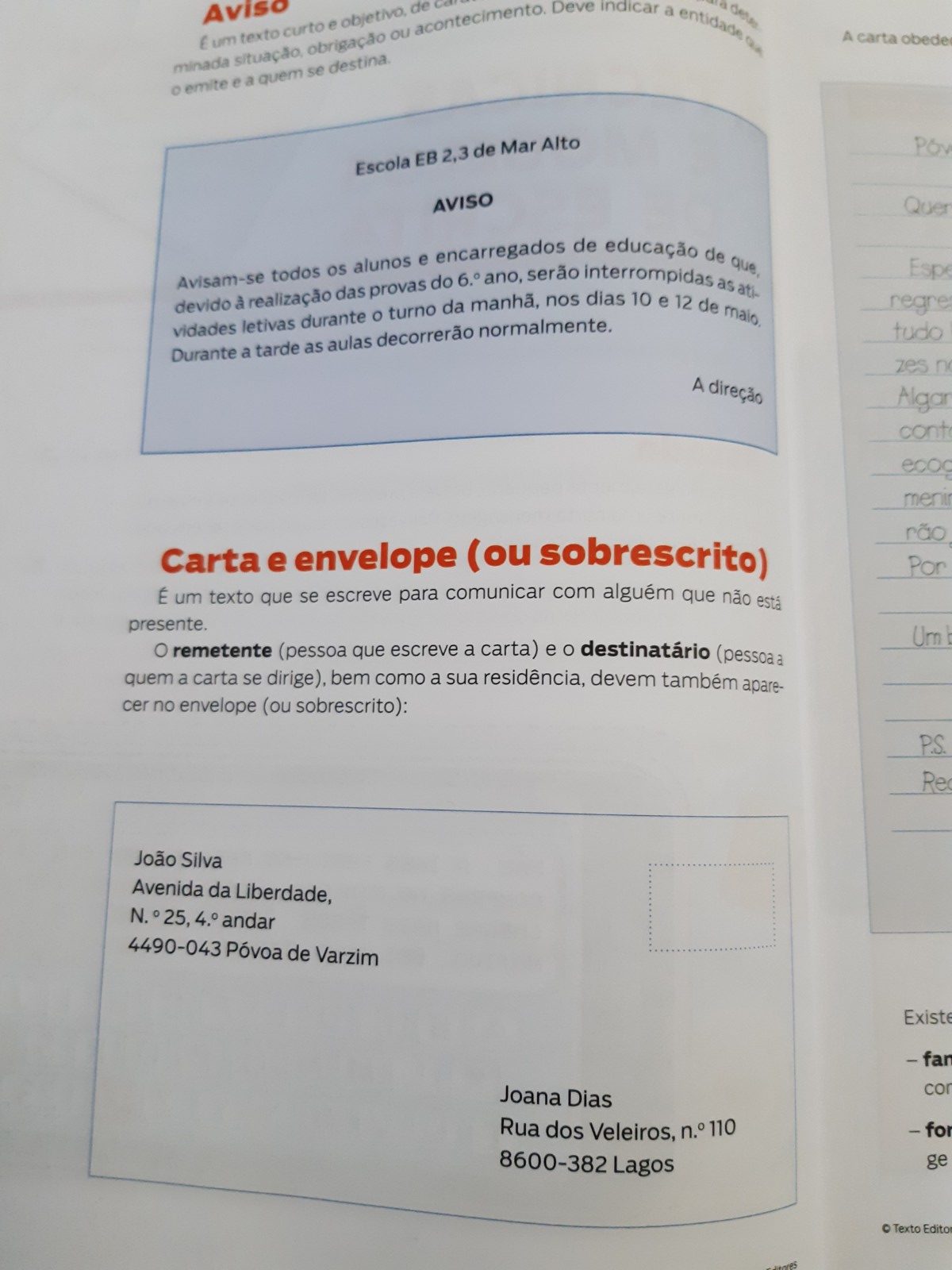 Português – Tipologias textuais: carta e envelope. Leitura integral da obra “A Viúva e o Papagaio” e realização do guião de leitura. Escrita de uma carta sobre as tradições de Natal das suas famílias e envio das mesmas pelo correio.