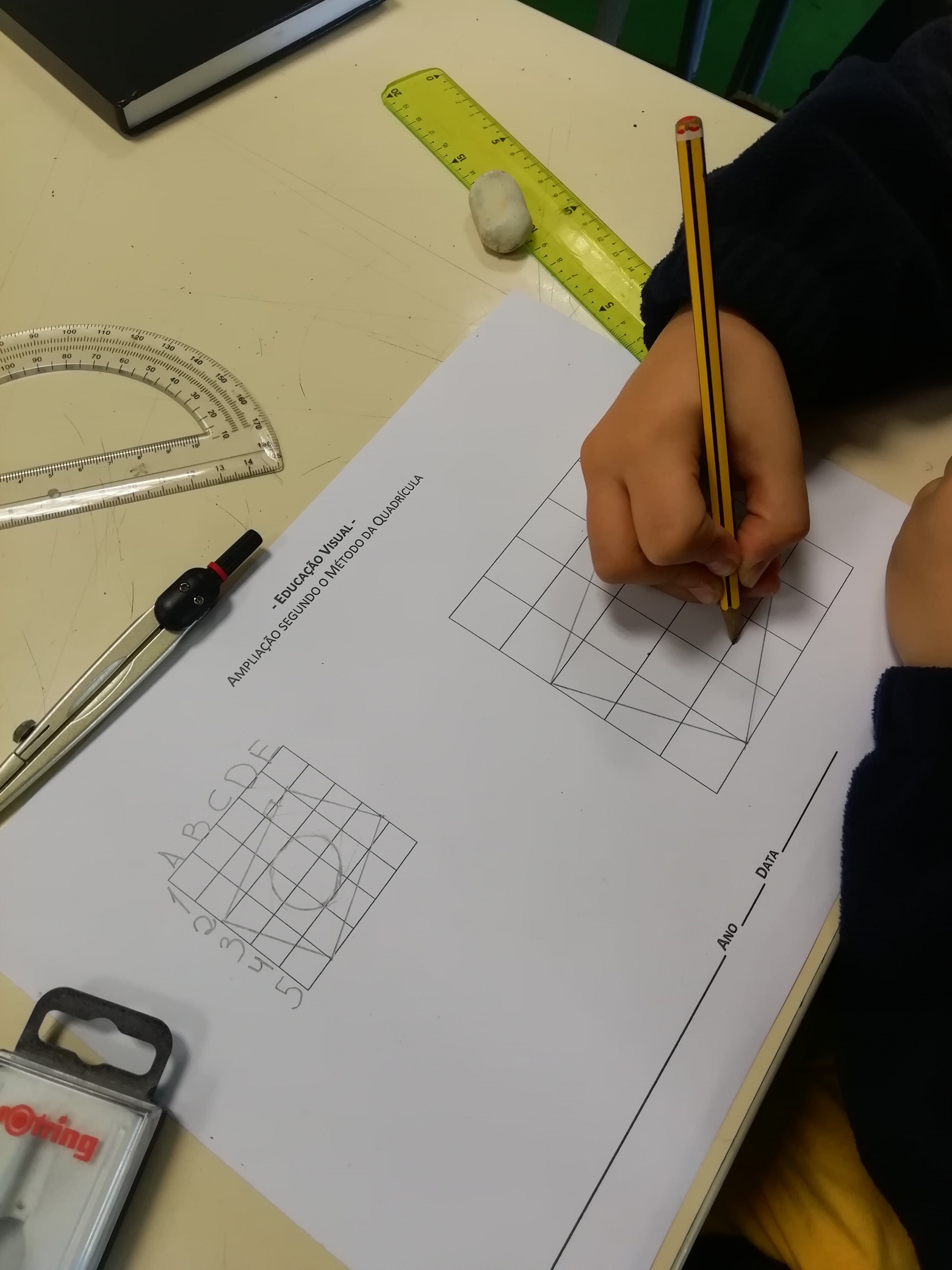 Educação Visual – Curiosidades sobre Escala, Redução e/ou Ampliação: representação de elementos físicos ou objetos no espaço. Composição gráfica ampliando (para o dobro) e/ou reduzindo (para metade), segundo o método da quadrícula.