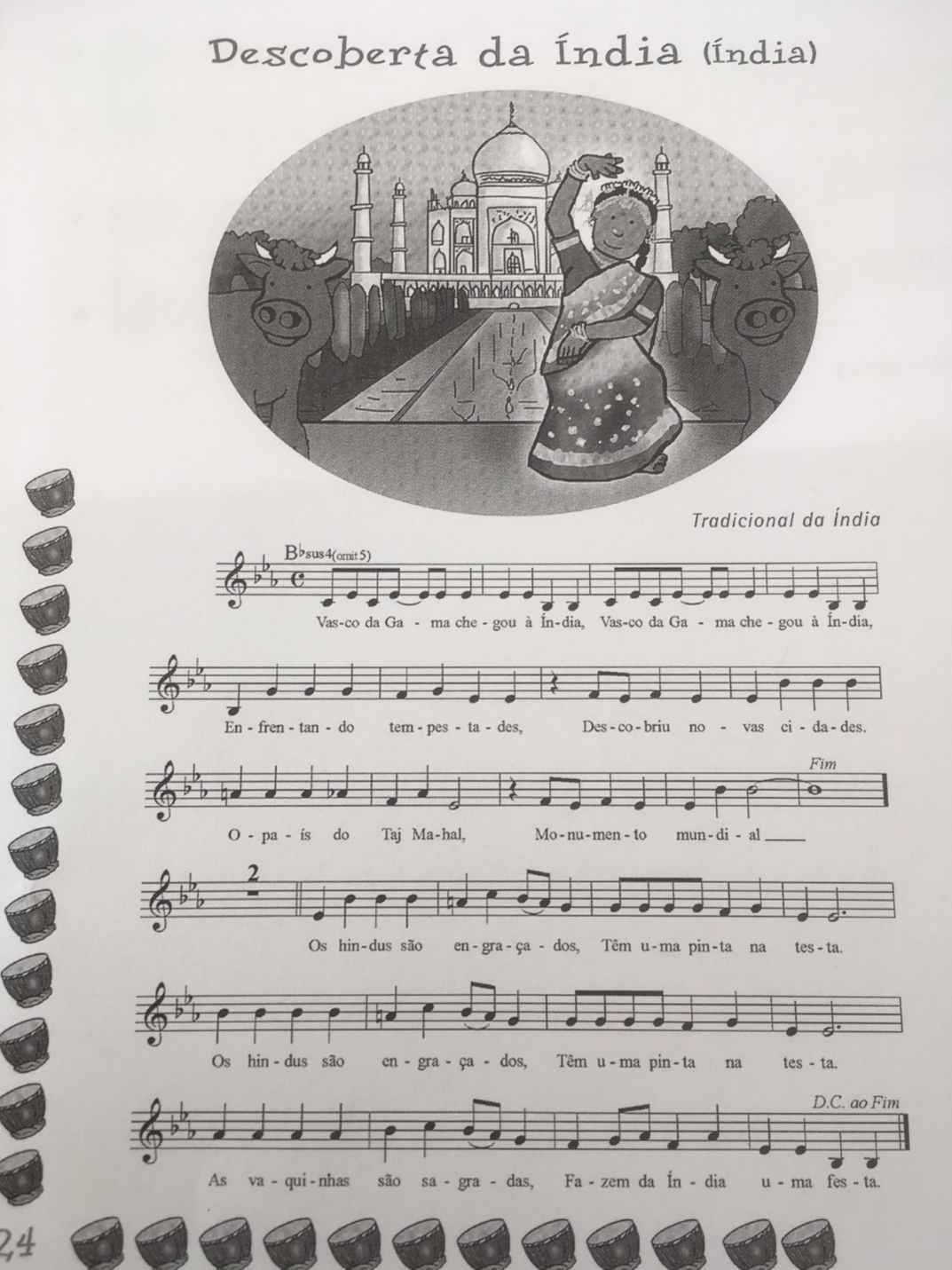 Música – Trabalhámos a canções oriunda do Brasil (“Samba-Lelê”) e da Índia (“Descoberta da Índia”).