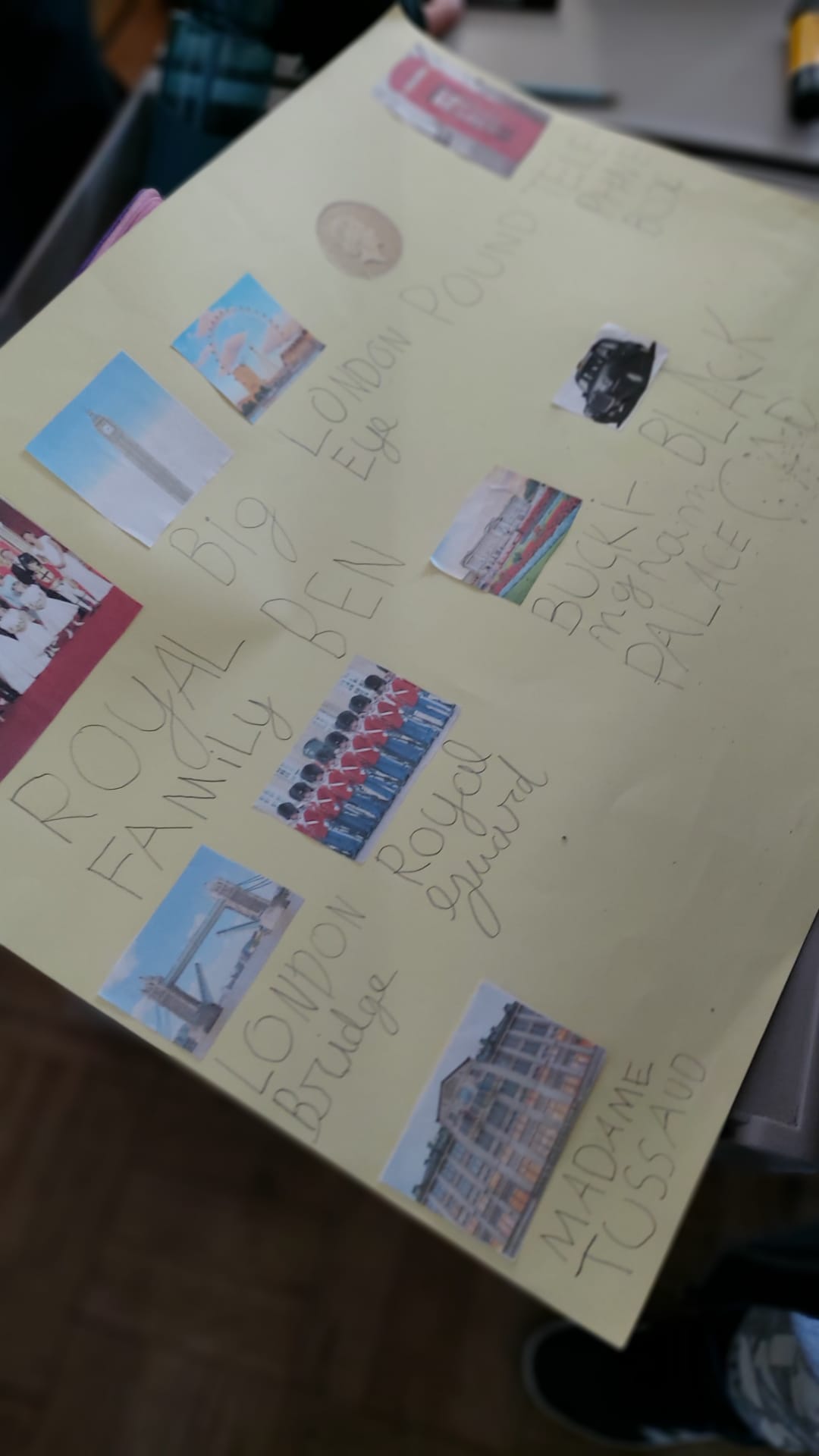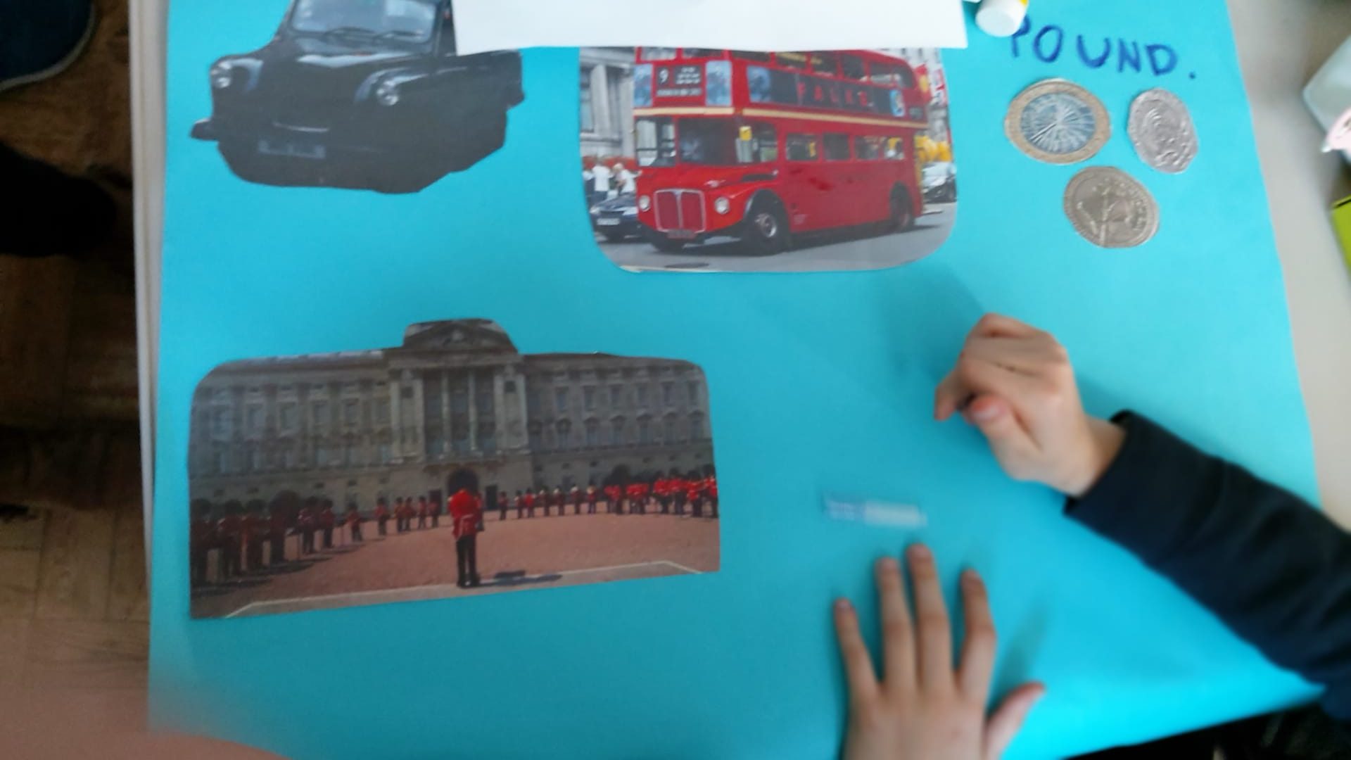 Inglês – Estudámos a cultura Inglesa- bandeira, família real e símbolos e construímos, em grupo, construímos cartazes.