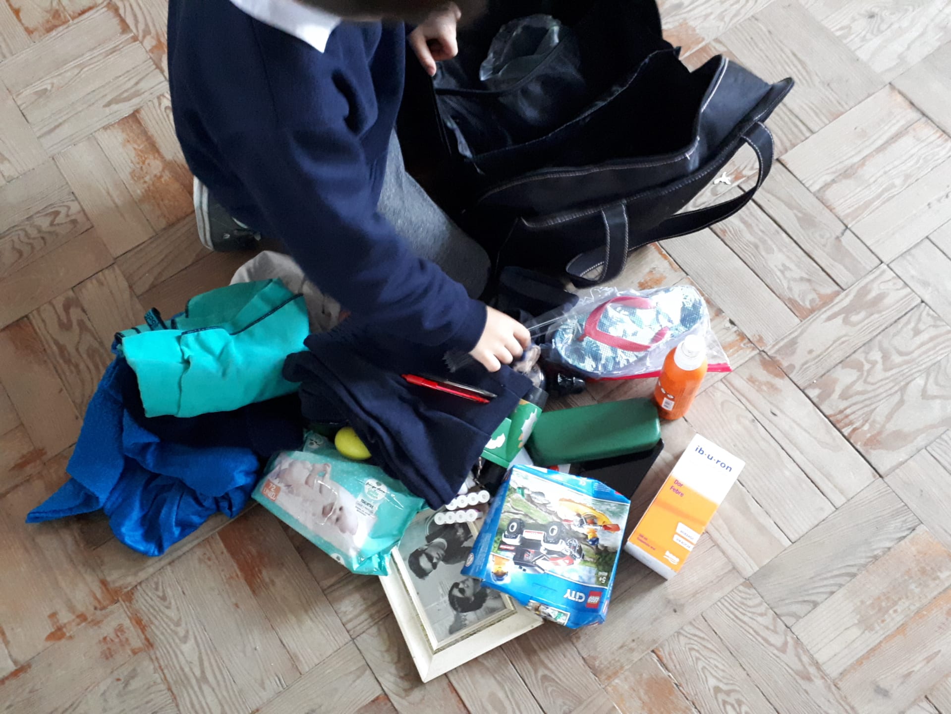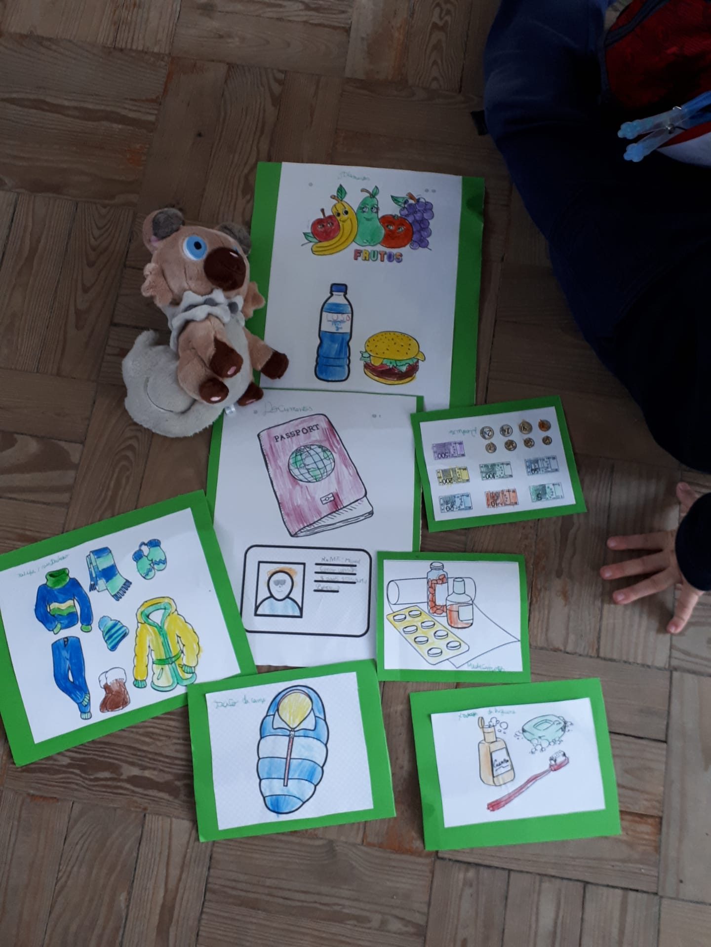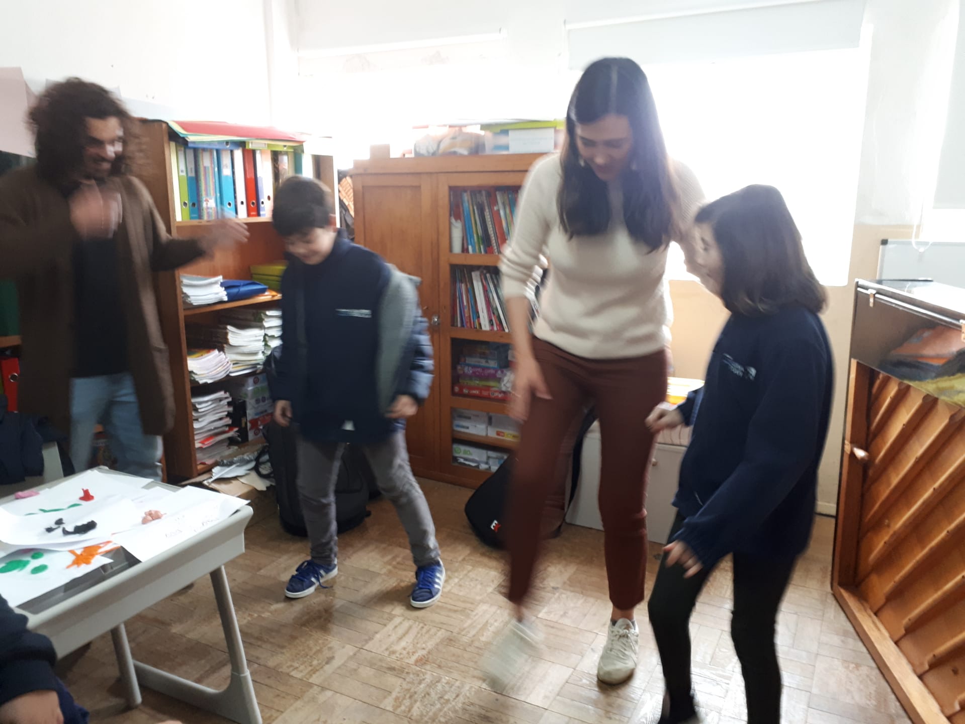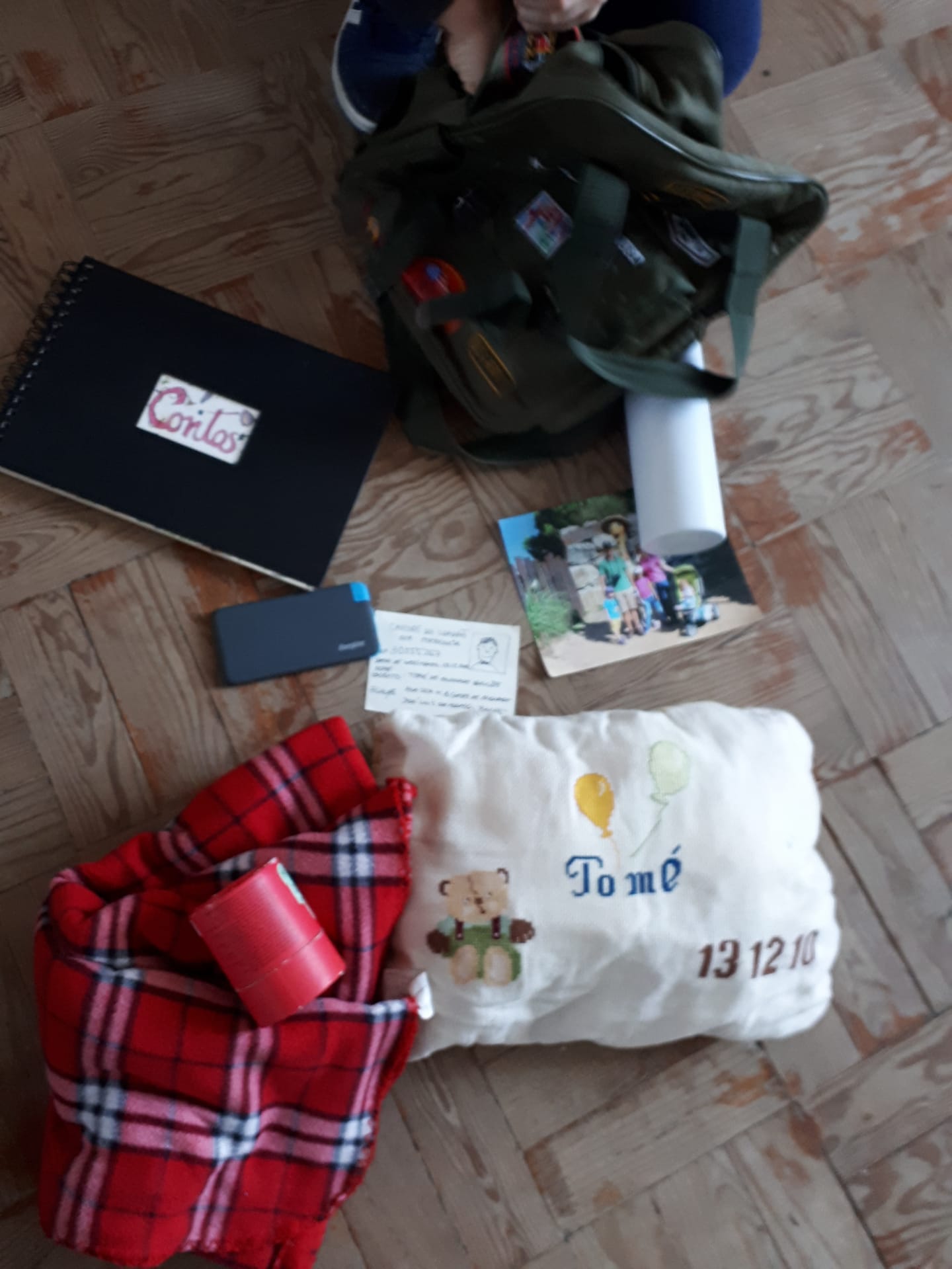 Expressão Dramática/teatro – Apresentámos as mochilas feitas em casa e de acordo com o “E se fosse eu. Fazer a mochila e partir”. Trouxemos de casa uma mochila com o que é essencial e importante para cada um de nós, caso tivéssemos de migrar agora.