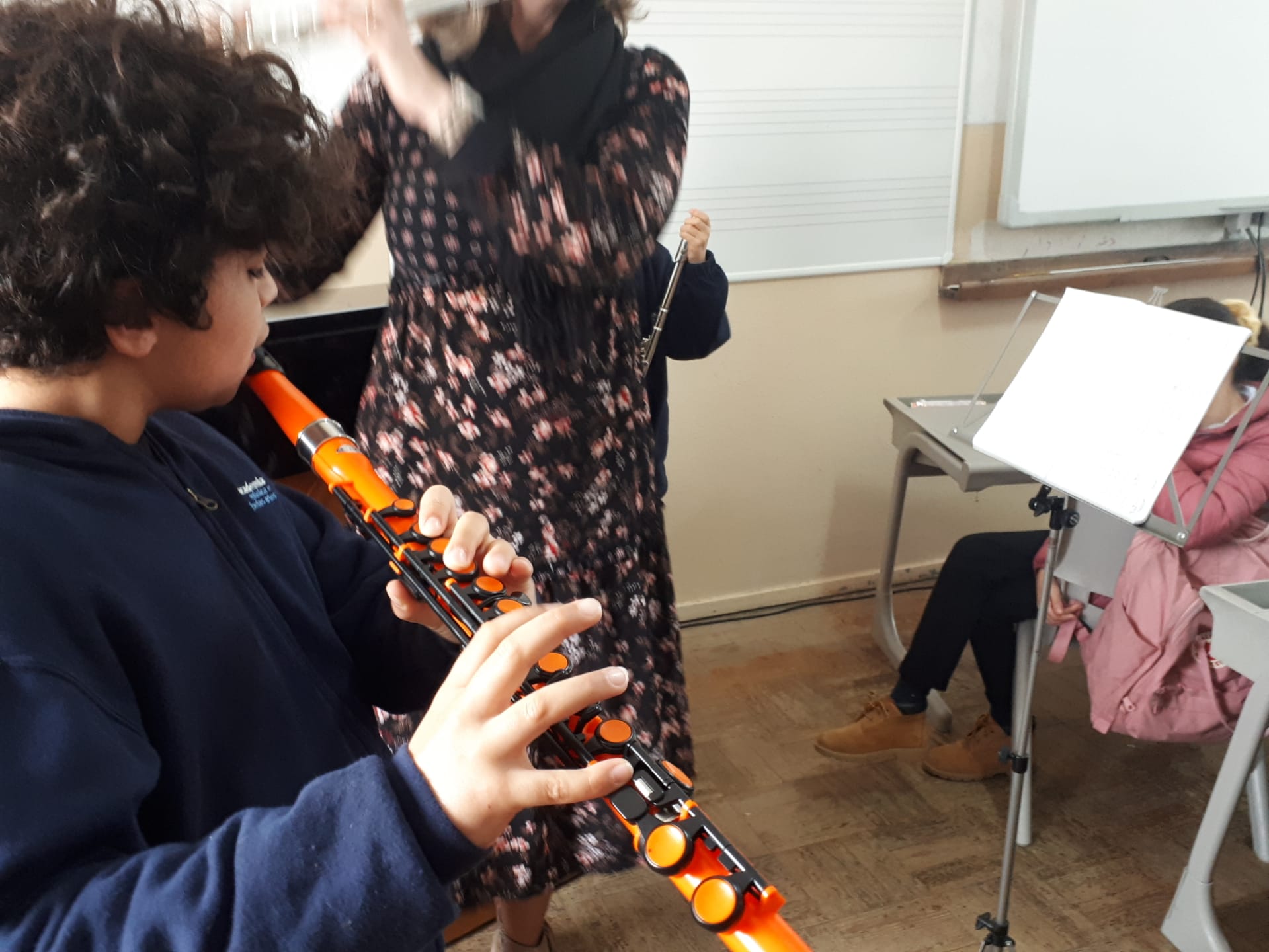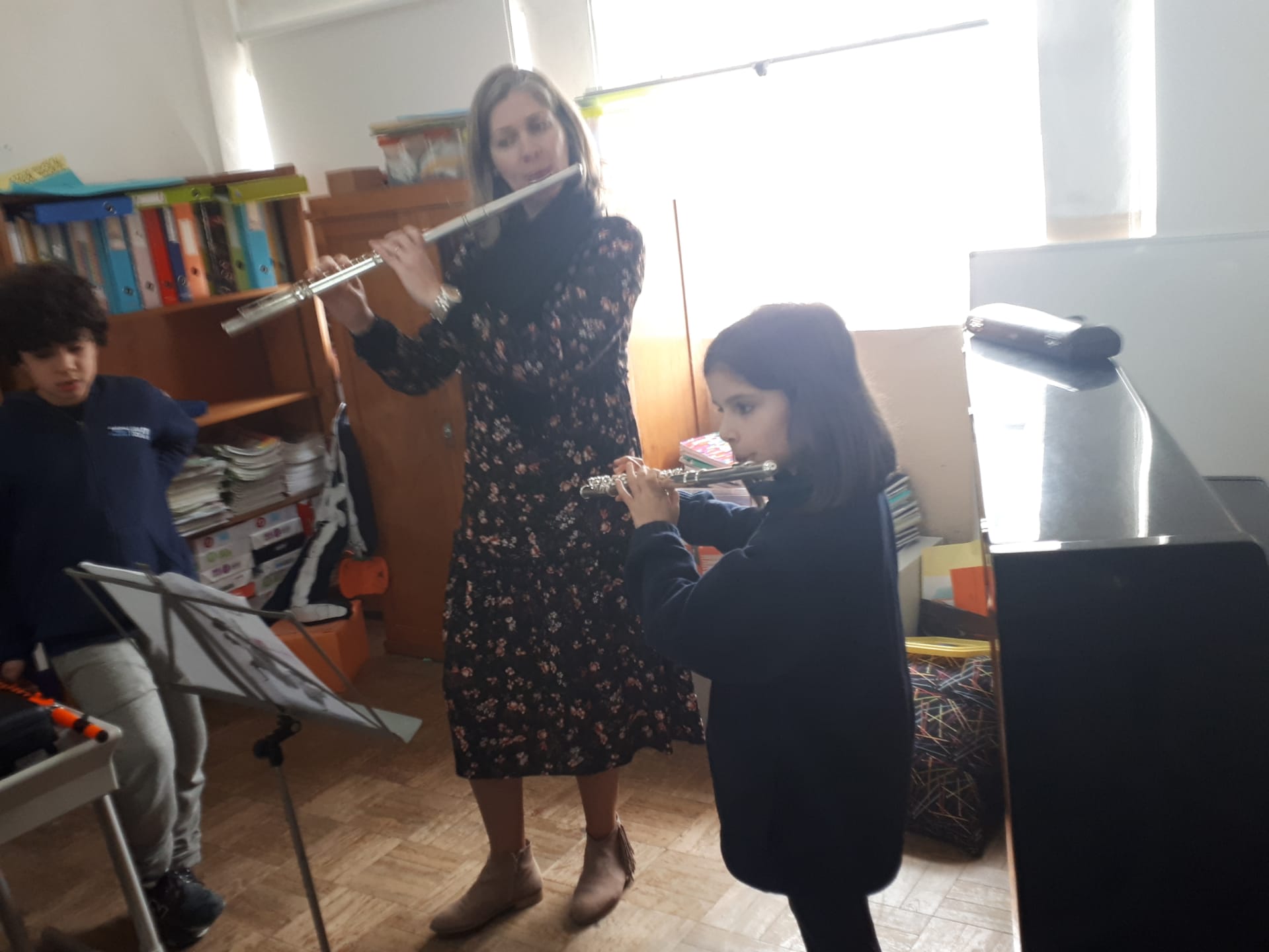 Dois alunos de flauta apresentaram-nos músicas do mundo.