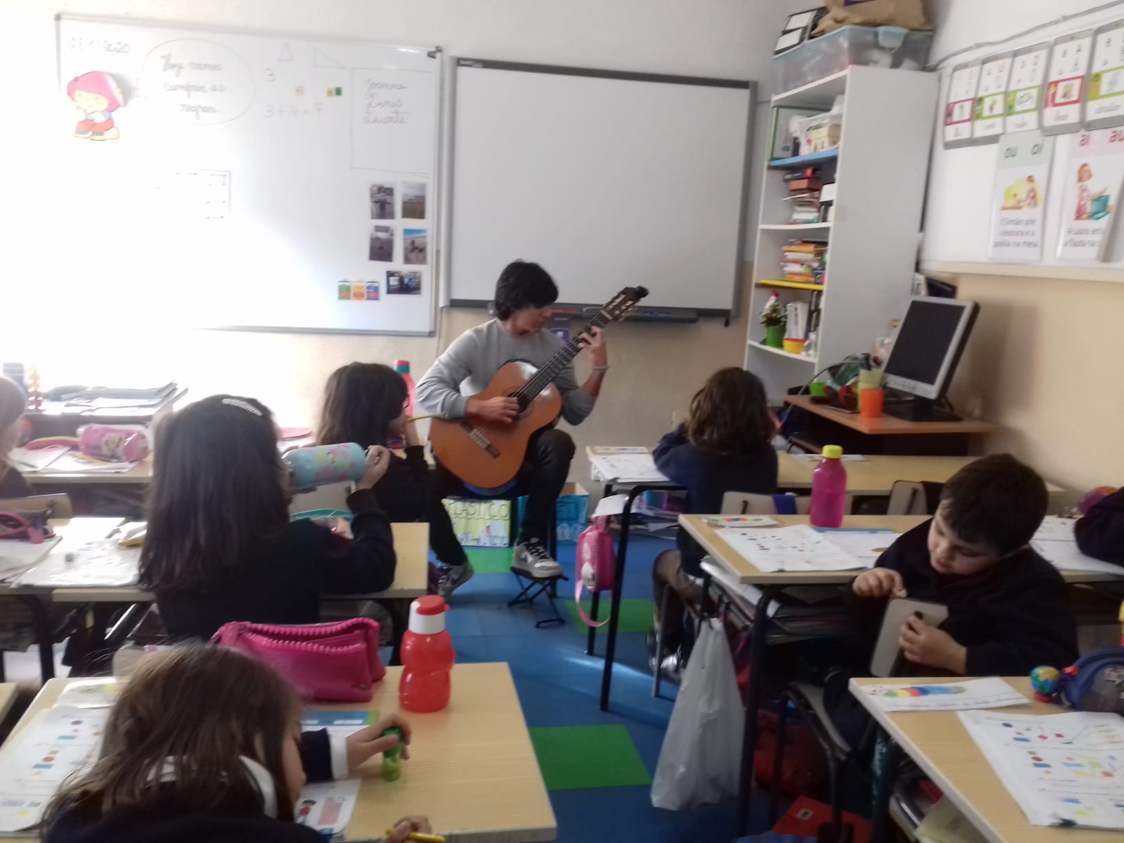 – Os alunos ouvem a história: “O corvo e a raposa”.