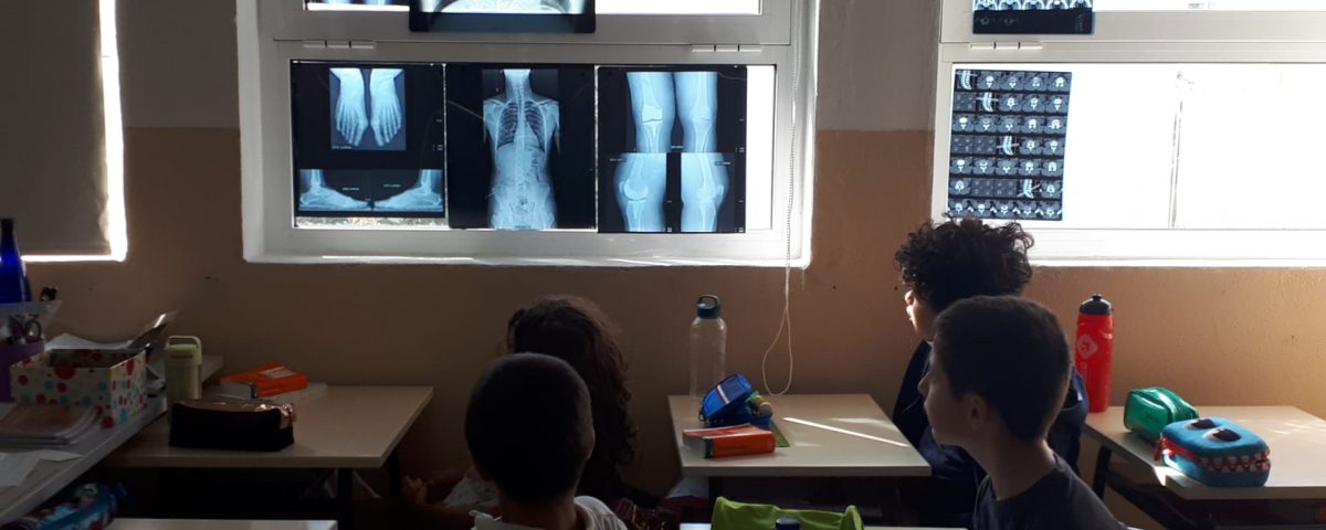 Em Estudo do Meio observámos vários Raios -X e identificámos os ossos do esqueleto humano. Fizemos experiências com ossos de galinha. Vimos a animação dos ossos e dos músculos e os vídeos da coleção “Era uma vez a vida”. Abordámos a pele e as suas funções. Visualizámos a história de Louis Braille e observámos vídeos de pessoas a lerem em Braille.