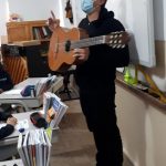 Instrumento: Fizemos a comparação do corpo humano Vs “corpo” do violino. E o professor de guitarra Luís Roldão fez a comparação do corpo humano Vs “corpo” da guitarra.