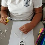 Nas Artes Visuais criámos um esqueleto, utilizando materiais reciclados.