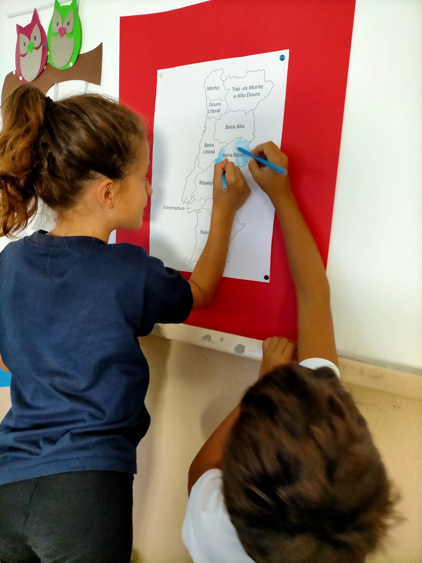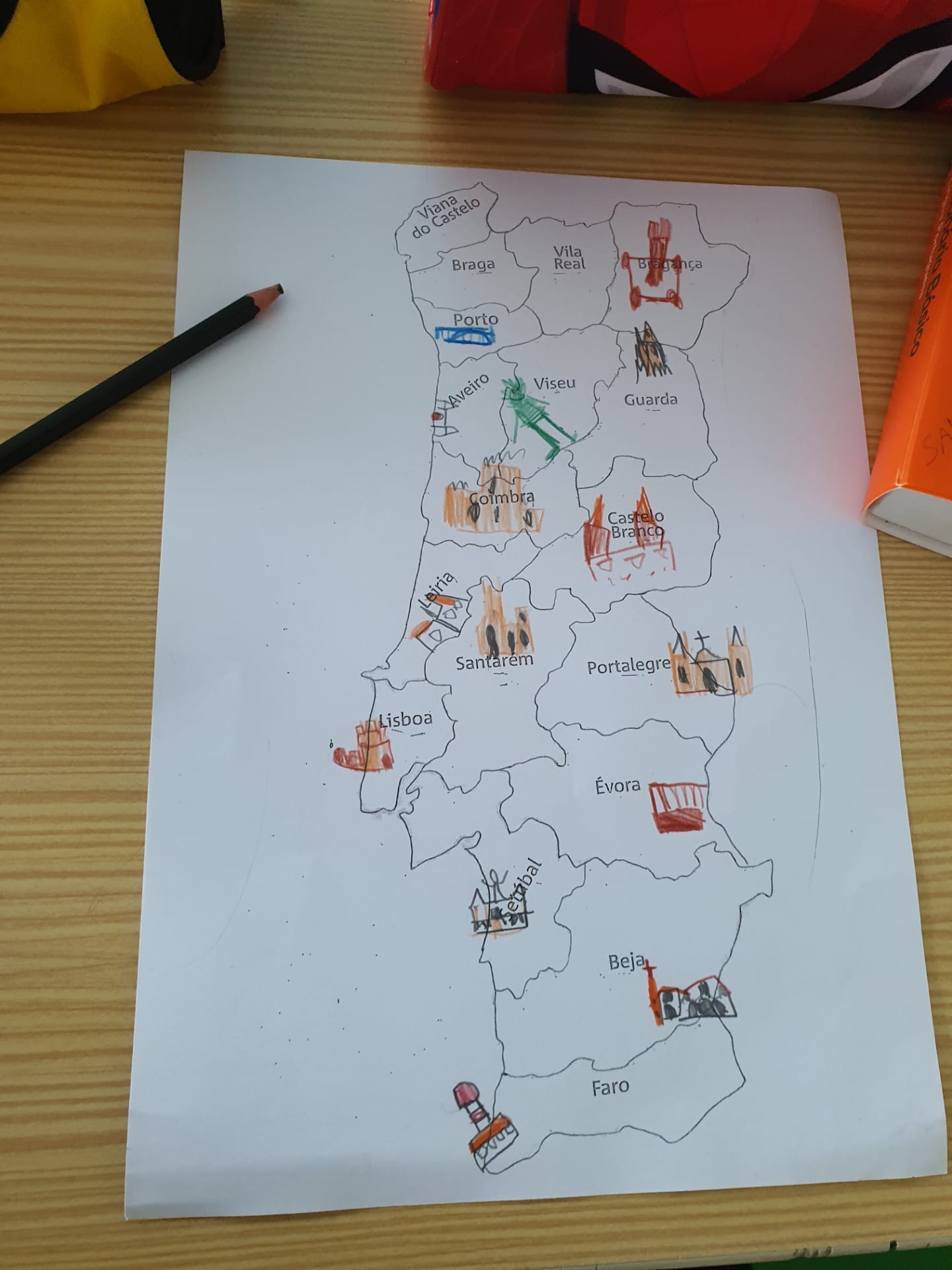 Em Português, os alunos leram textos sobre factos do nosso país e que ilustraram a diferença entre naturalidade e nacionalidade. Procurámos ainda saber mais sobre monumentos existentes e ilustrámos um mapa.